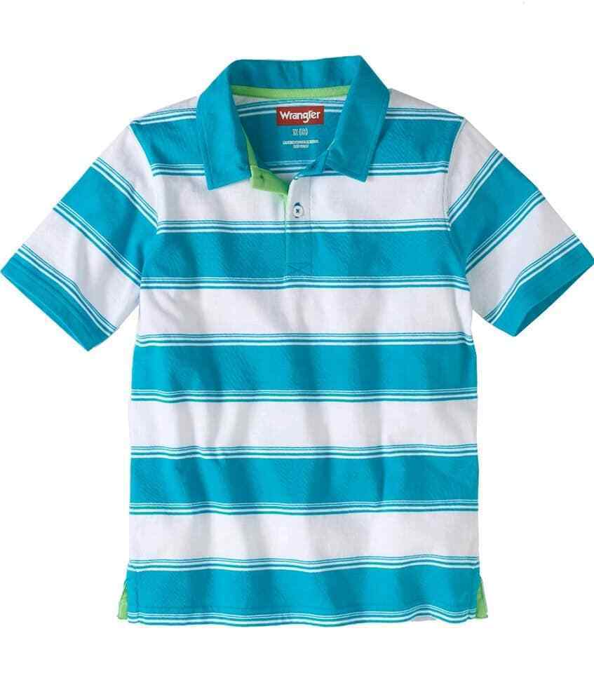 Every little boy's wardrobe is improved with a classic polo shirt, and this short-sleeve polo from Wrangler is a fine choice. Made of soft and breathable 100% cotton, this shirt has a timeless ribbed polo collar and a two-button front placket for a variety of wearing possibilities. The inner of the neckline is tag-free for additional comfort. Available in an assortment of classic striped styles, this polo shirt pairs well with anything from jeans to khakis to cargo shorts to dress pants, and will keep him looking as cute as a button in casual and dressy situations.