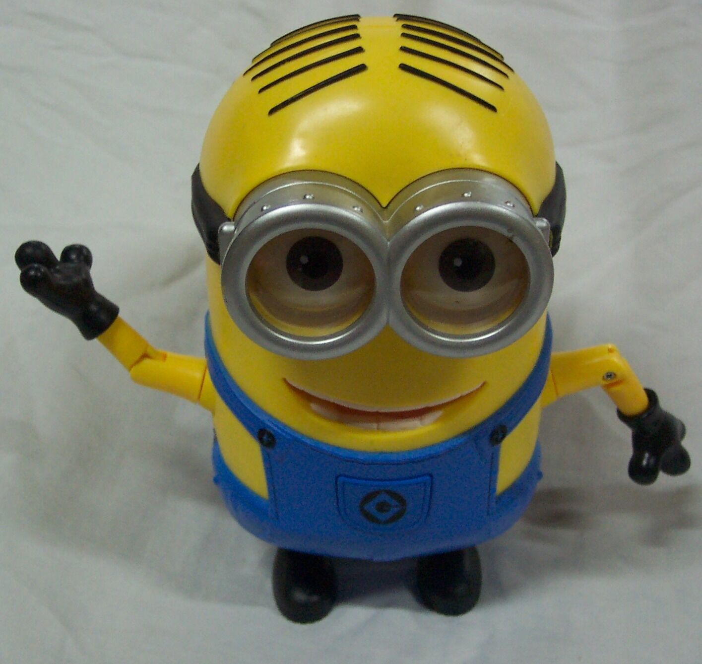 This is a Despicable Me Minion Movie ANIMATED DAVE MINION Plastic Toy. Made by Thinkway Toys. It is 8 inches tall. It is in great condition. Talks, sings grooves to music sounds. Sound Activated - Responds to your voice. Includes his favorite Minion song clip too. Poseable Arms. Combine auctions to save on shipping. Please contact me if you need to make other payment arrangements. AG