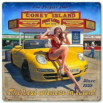 Coney Island Hot Dogs Pin Up Metal Sign Greg Hildebrandt