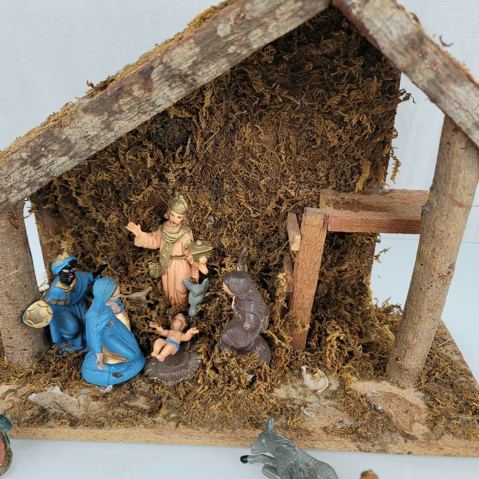 Vintage Wood Wooden Creche Nativity with Holy Family Mary Joseph Jesus Wise Men
