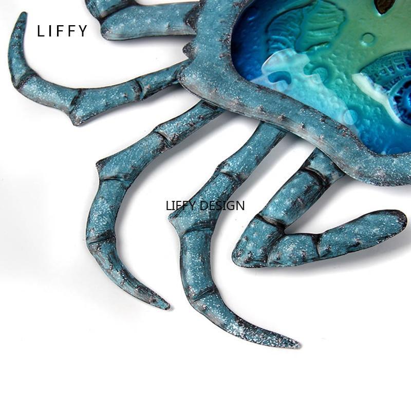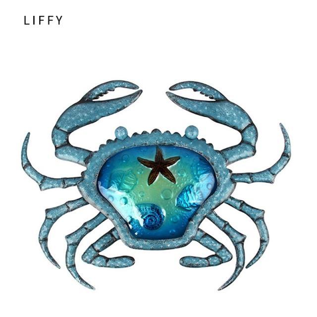 Pretty Crab Wall Decor - Made of high quality iron glass, this sculpture shows the perfect union of craftsmanship and imagination that kinds of small sea creatures like starfish, shell and conch on the central glass and the detail of claws are exquisite