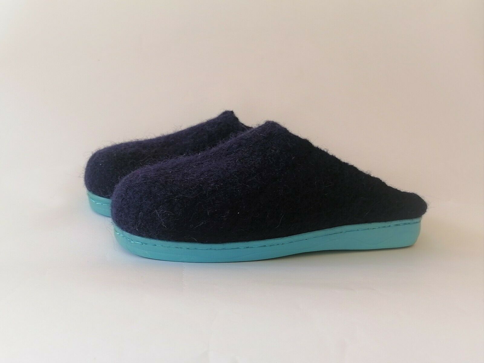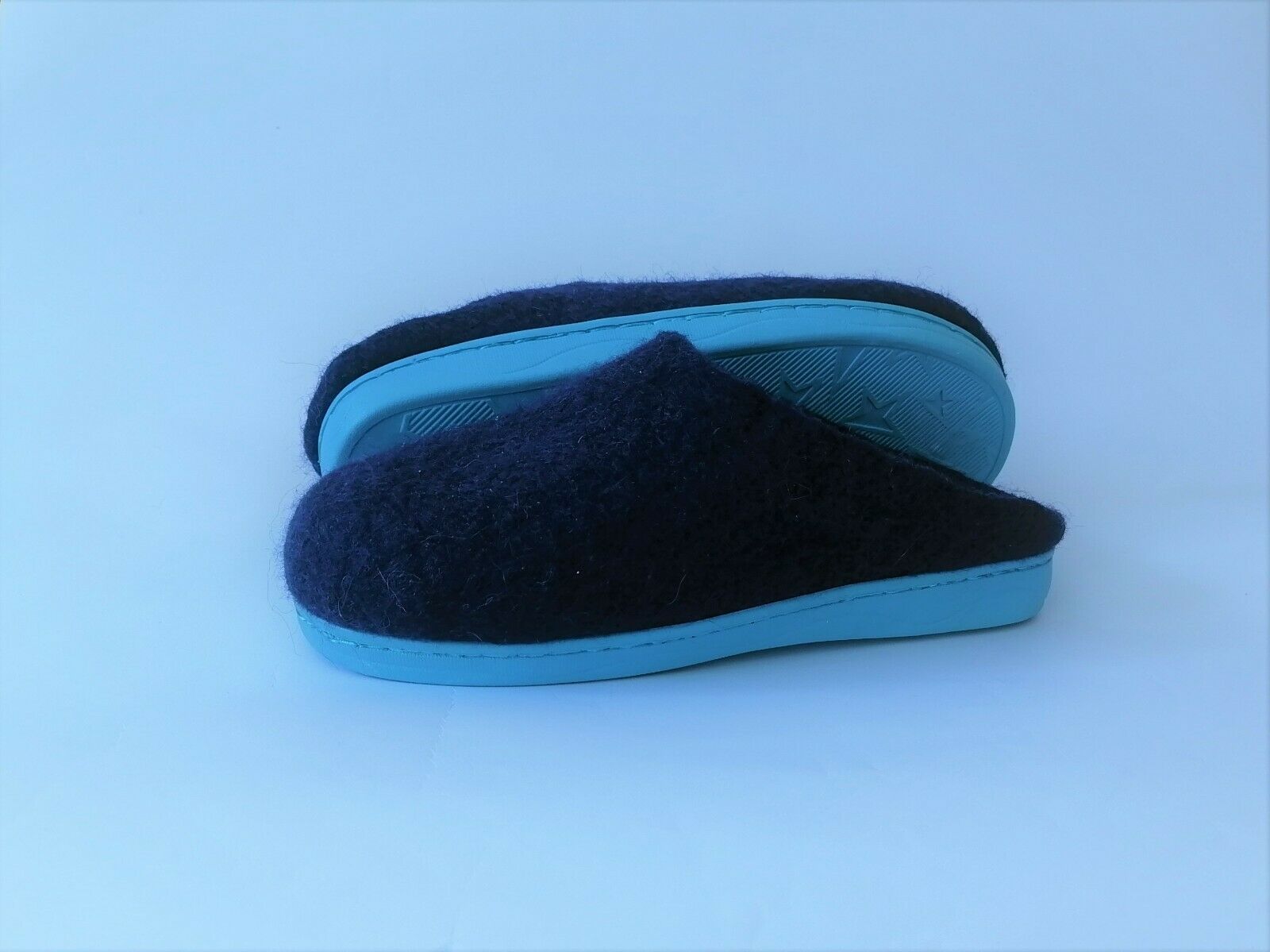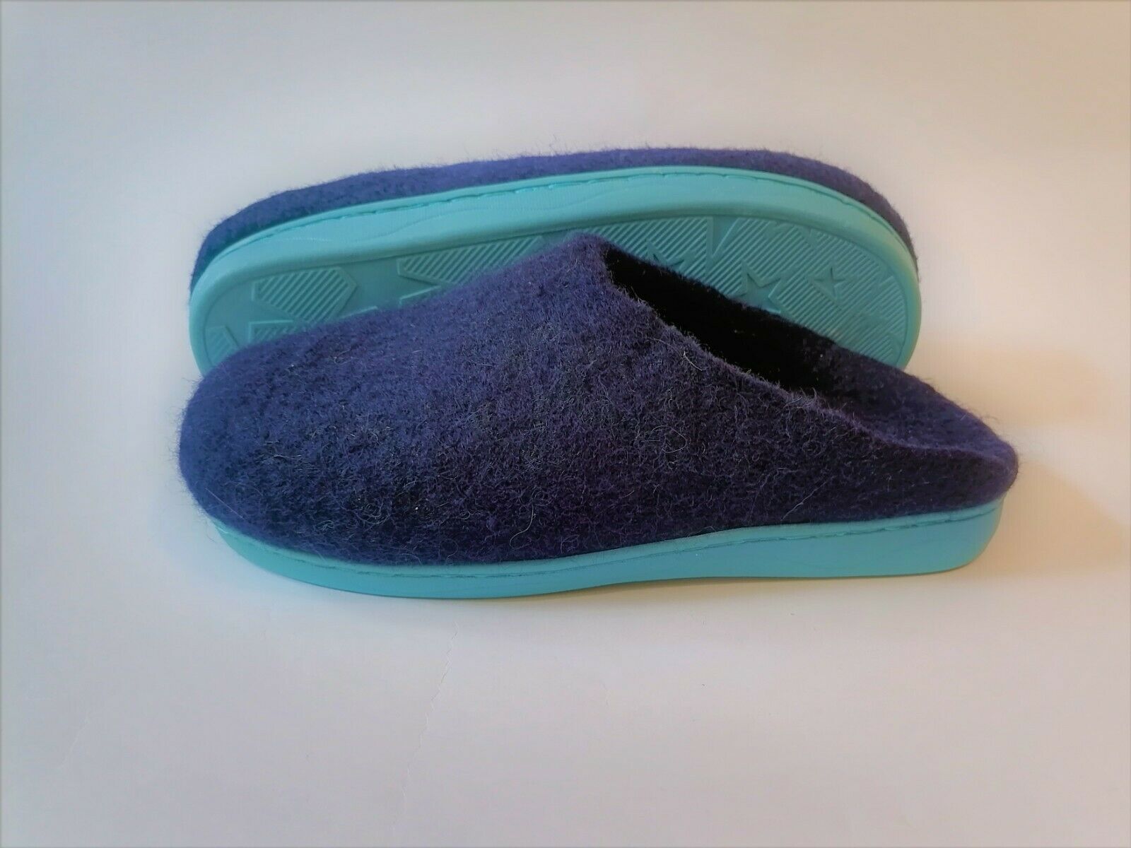 US10 Women blue Felt slippers * Handmade house shoes * Felted mules