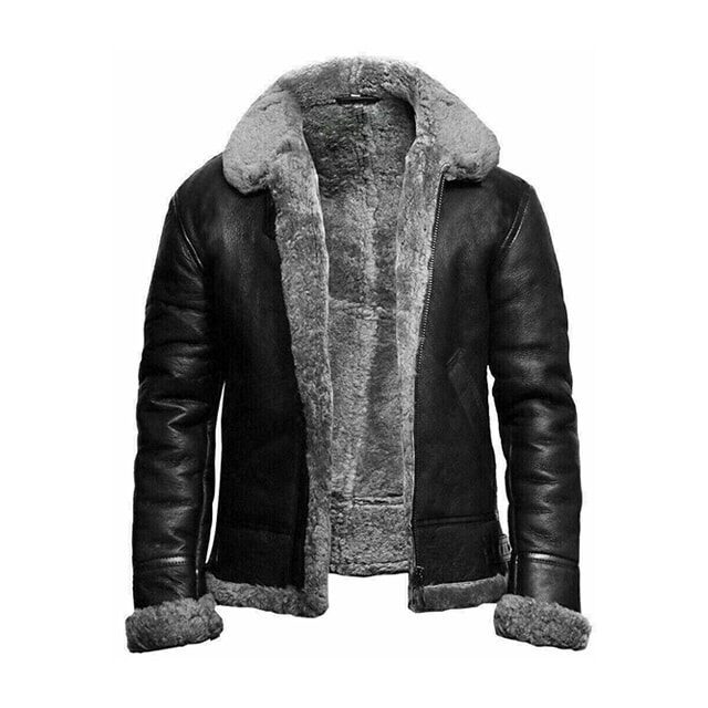 Leather Hub Online Black Shearling Fur Aviator Sheepskin Leather Jacket For Men