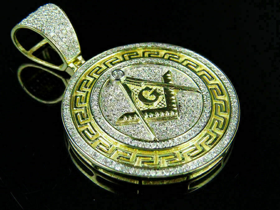 2Ct Round Cut Diamond Masonic Logo Pendant 14K Yellow Gold Finish Free Chain