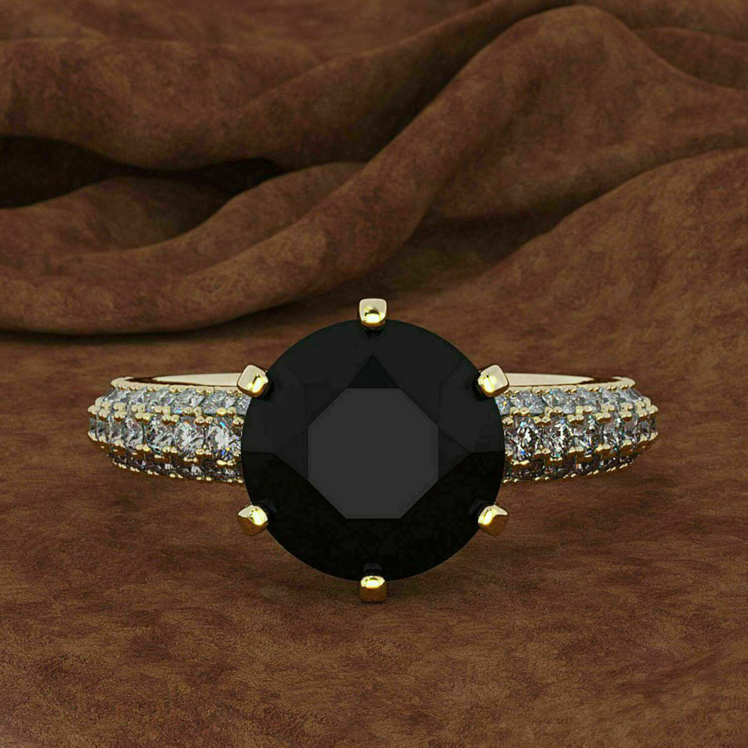 2Ct Round Cut Black Diamond Engagement Wedding Ring For Her 14K Yellow Gold Over