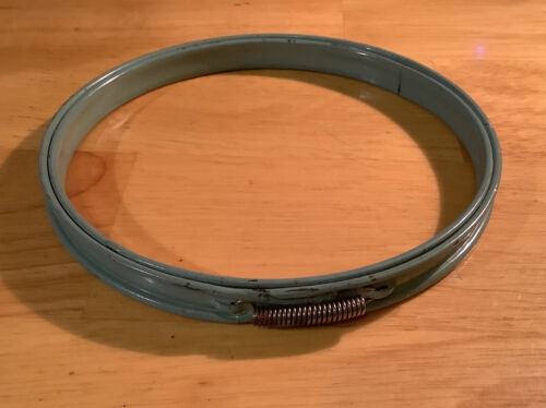 Vtg Blue Metal 5 inch Embroidery Hoop. Preowned in very good condition. Cork lined, spring tension. Nice and tight. Feel free to email with questions. I do combine shipping on multiple purchases. Have a great day!