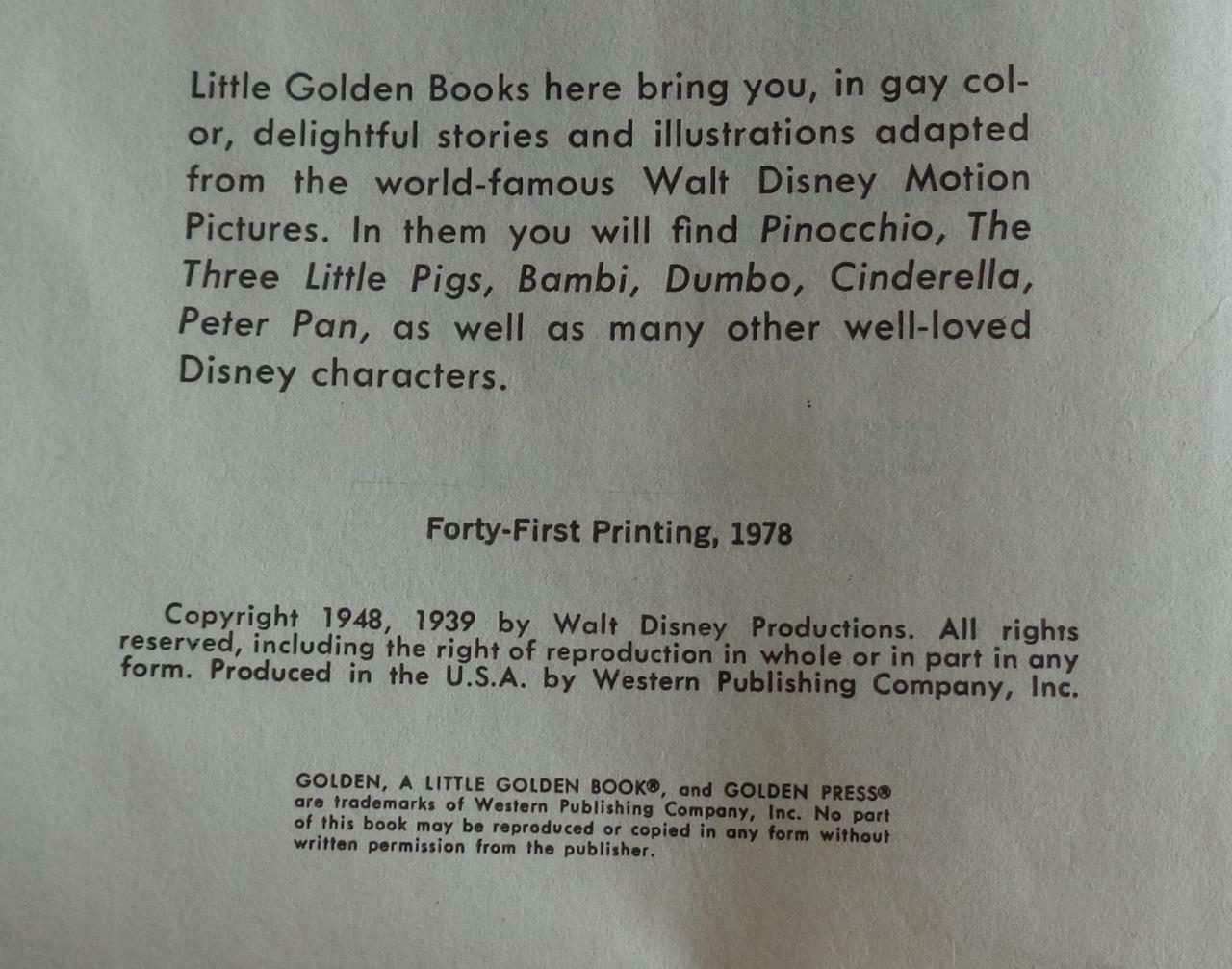 Walt Disney’s Pinocchio – a Little Golden Book – 1978 – GDC –CLASSIC WALT DISNEY