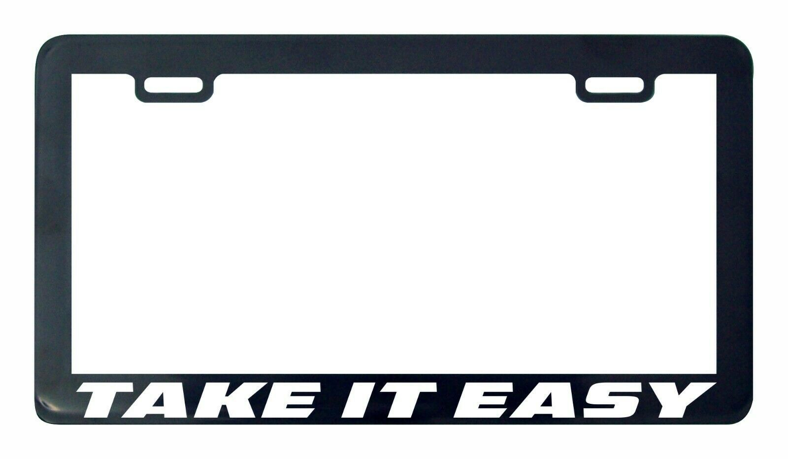 Custom and personalized license plate frame send note with top and bottom lettering.