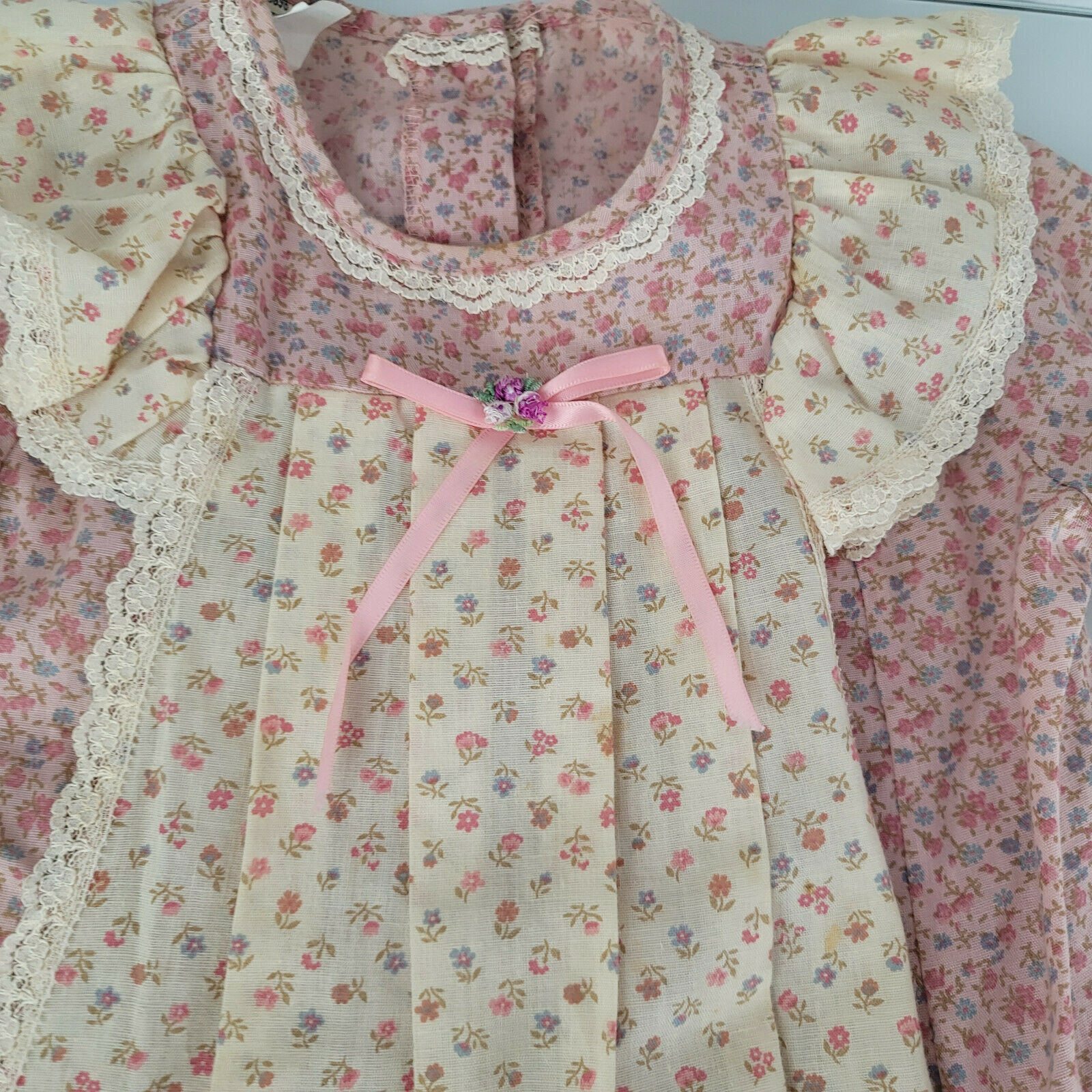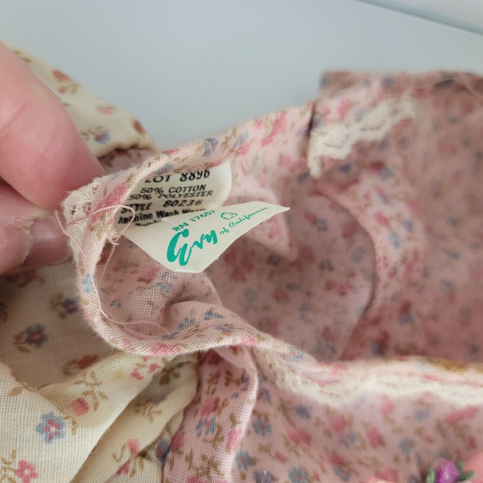 Vintage Evy California Floral Apron Dress 4 Pink Cream Little House on Prairie