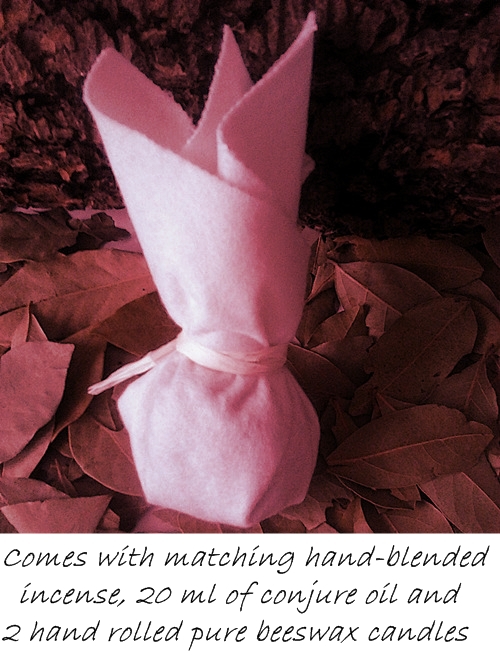 Complimentary Hoodoo products available in this formula include : Conjure oil (for when you run out), sprinkling powder, hand-blended incense, magickal bath mix, hand-dressed candles, jack balls, spellvelopes plus deluxe spell kits .I also offer spellcasting service, which can boost any mojo bag work you do. See my shop for these.