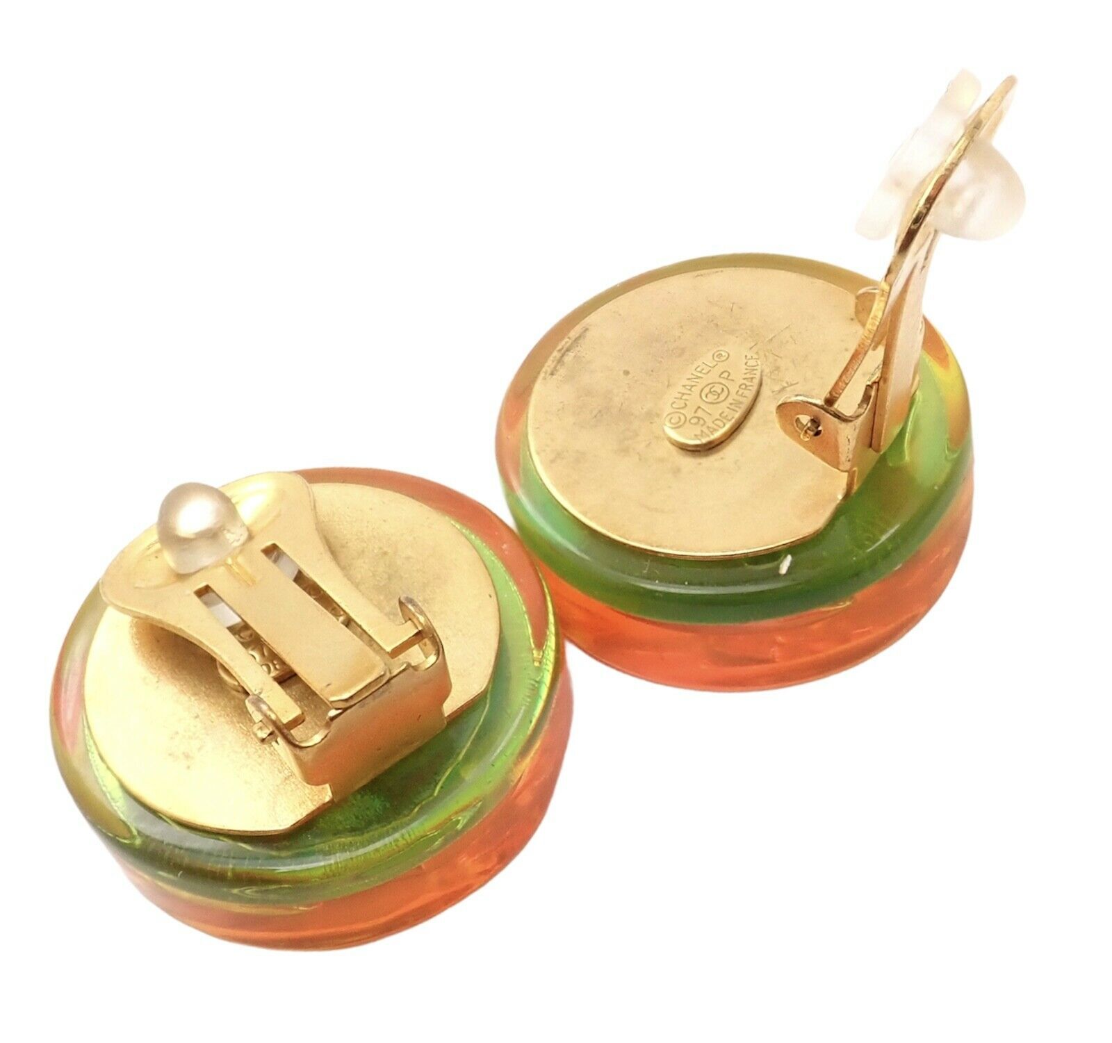 Rare! Vintage Chanel Paris France Holographic Logo Camellia Earrings 1997 Spring