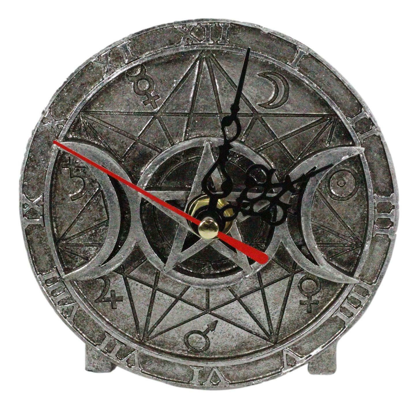 Ebros Wicca Triple Moon Goddess Witches Grimoire Symbols Analog Desktop Clock