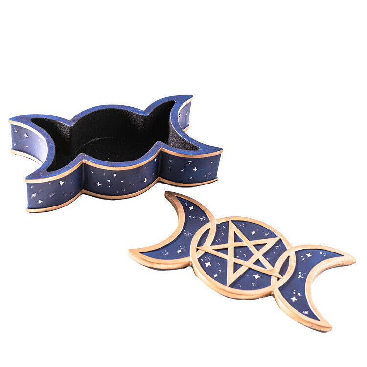 โข This Triple Goddess Sacred Moon Decorative Box is made of designer composite resin, hand painted and polished individually. Color tone may vary slightly from pictures.