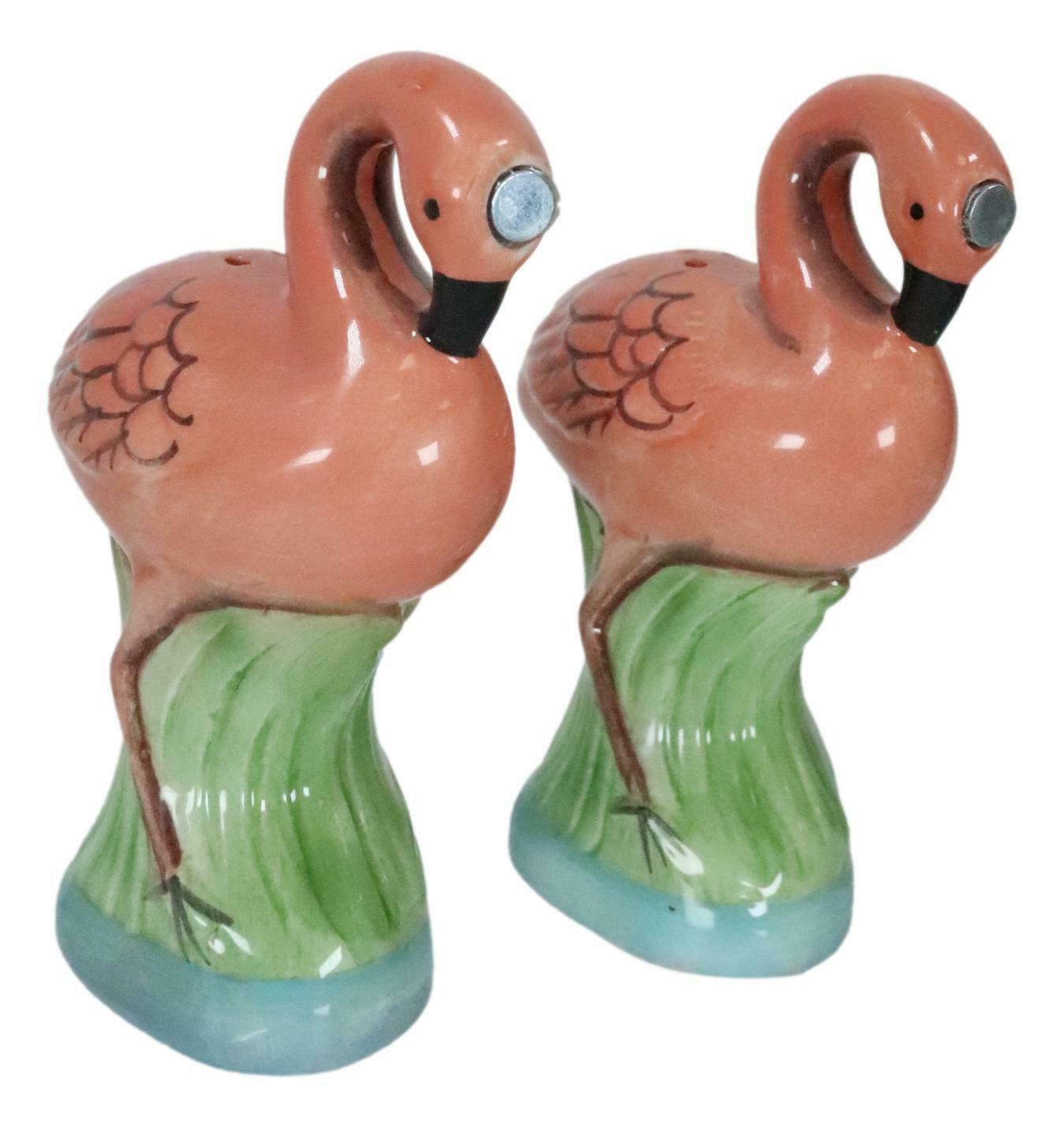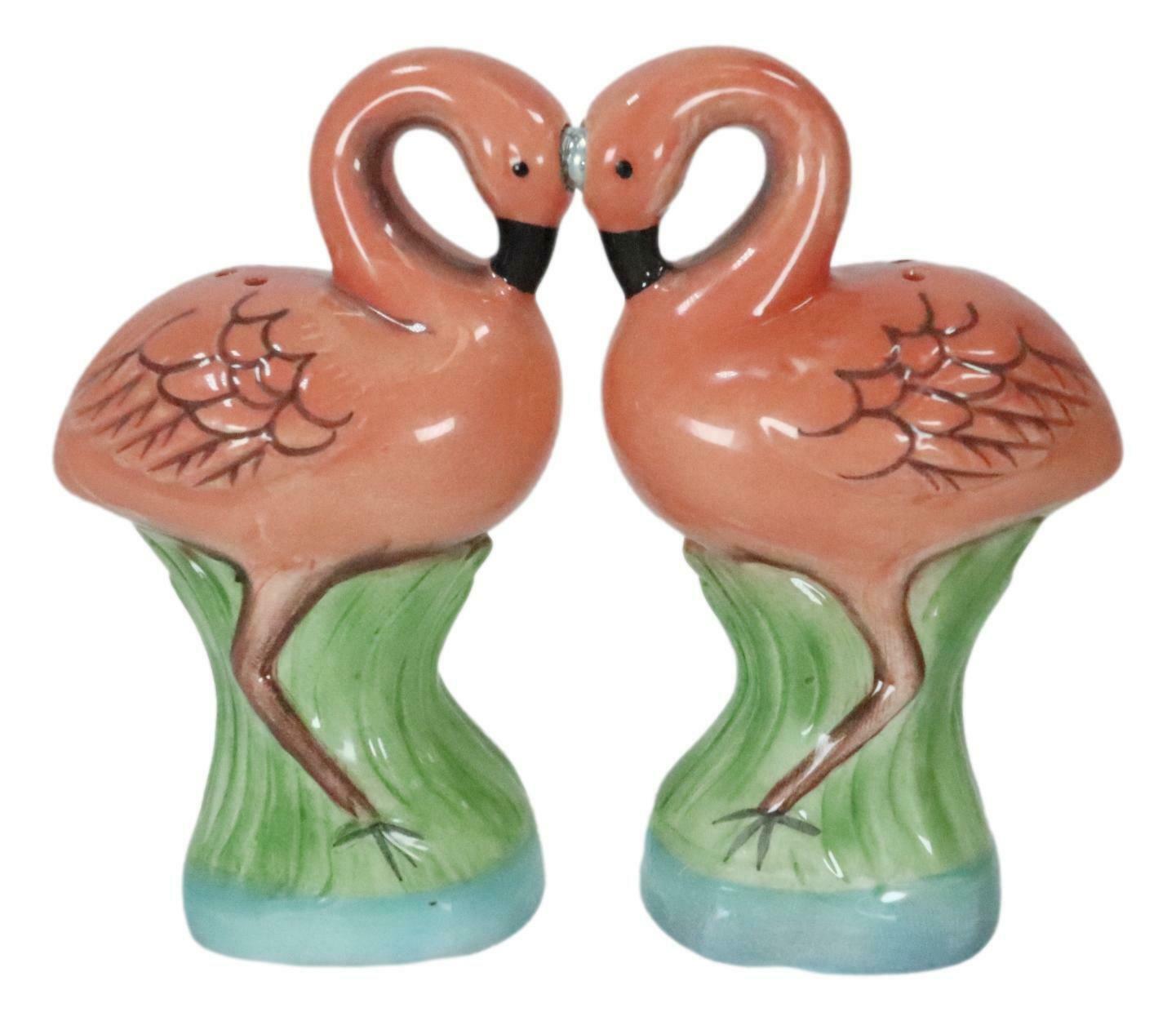 Ceramic Tropical Paradise Birds Love Pink Flamingos Salt and Pepper Shakers Set