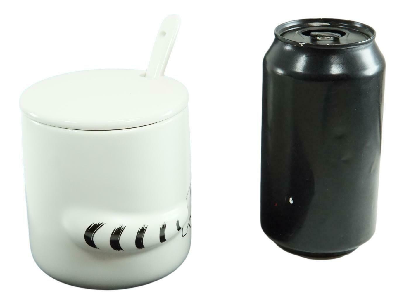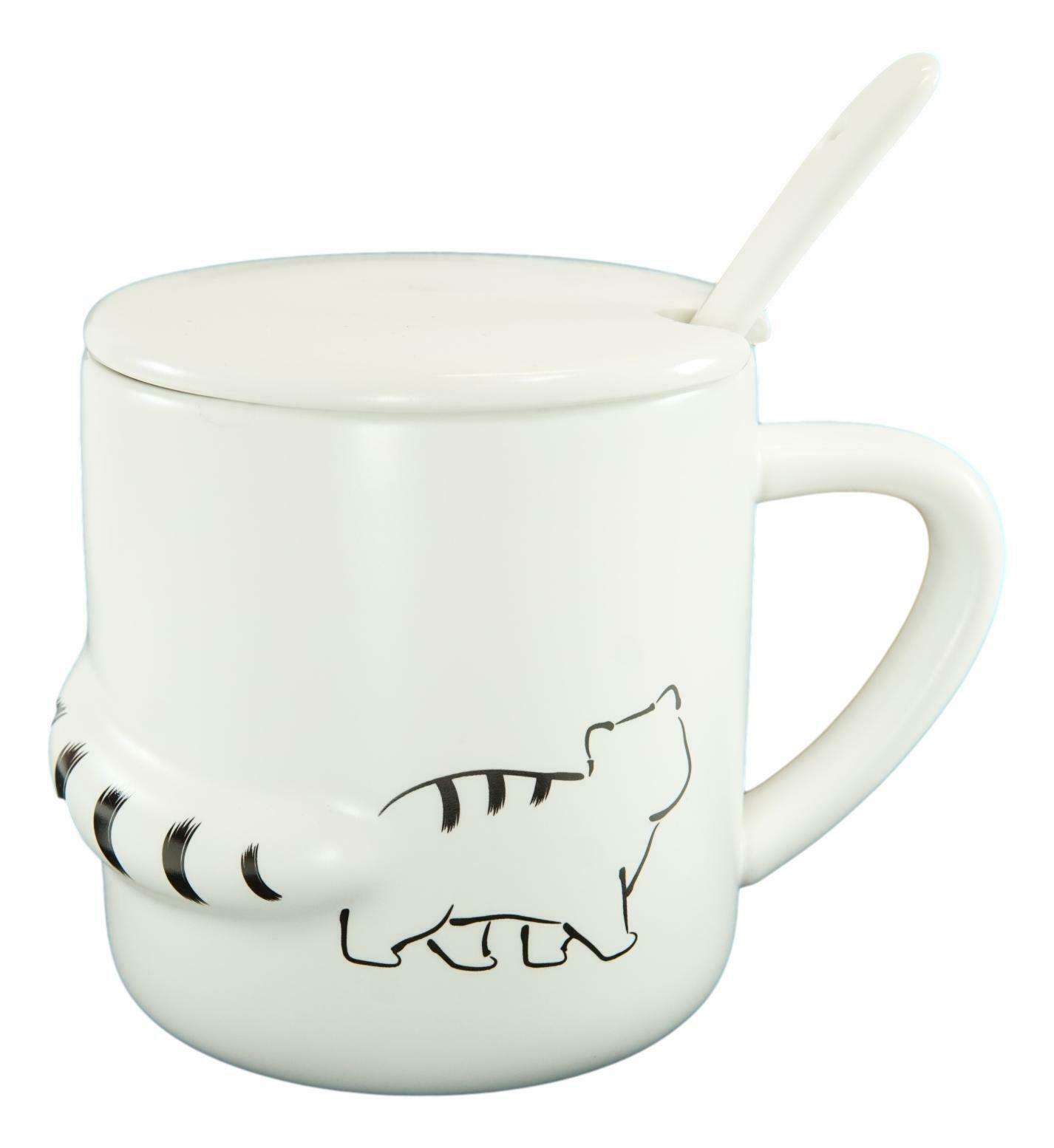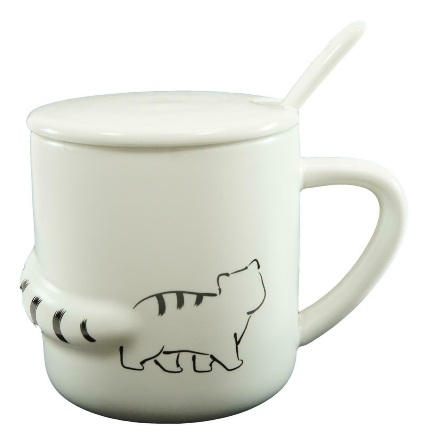 Pack Of 2 Black White Walking Cat 3D Tail Coffee Mugs With Lid And Spoon 12oz