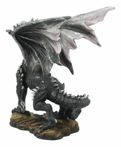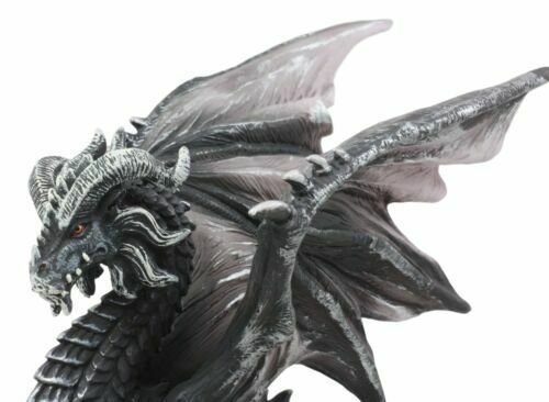 Ebros Fantasy Black Silver Volander Ancient Wise Dragon Statue 8"H Collectible