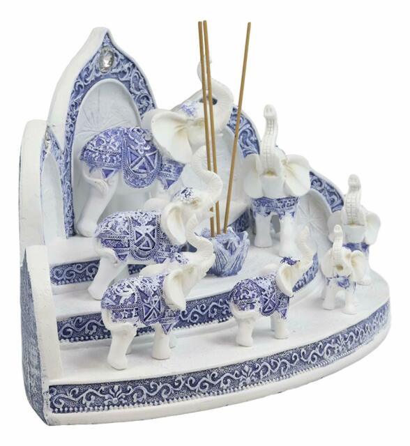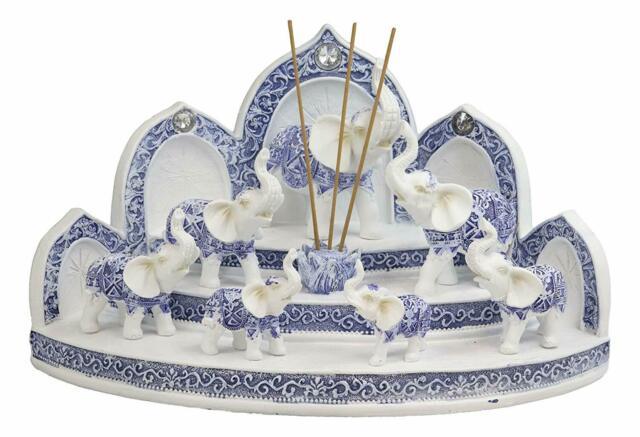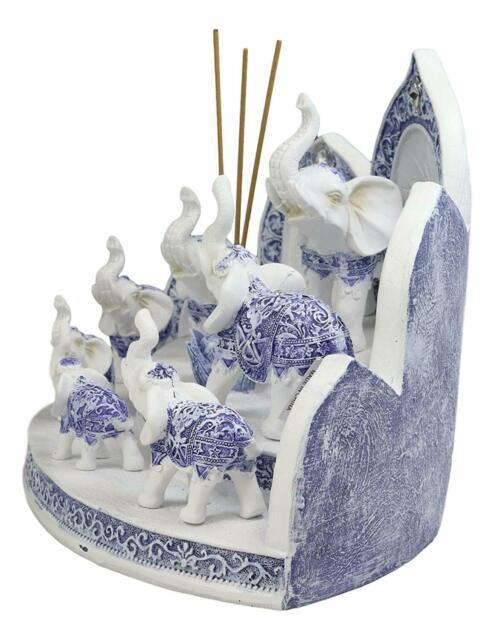 These Terracotta Blue And White Thai Buddhism Elephant Miniature figurines with the incense holder display stand set is made of designer composite resin, hand painted and polished individually. Color tone may vary from pictures.
