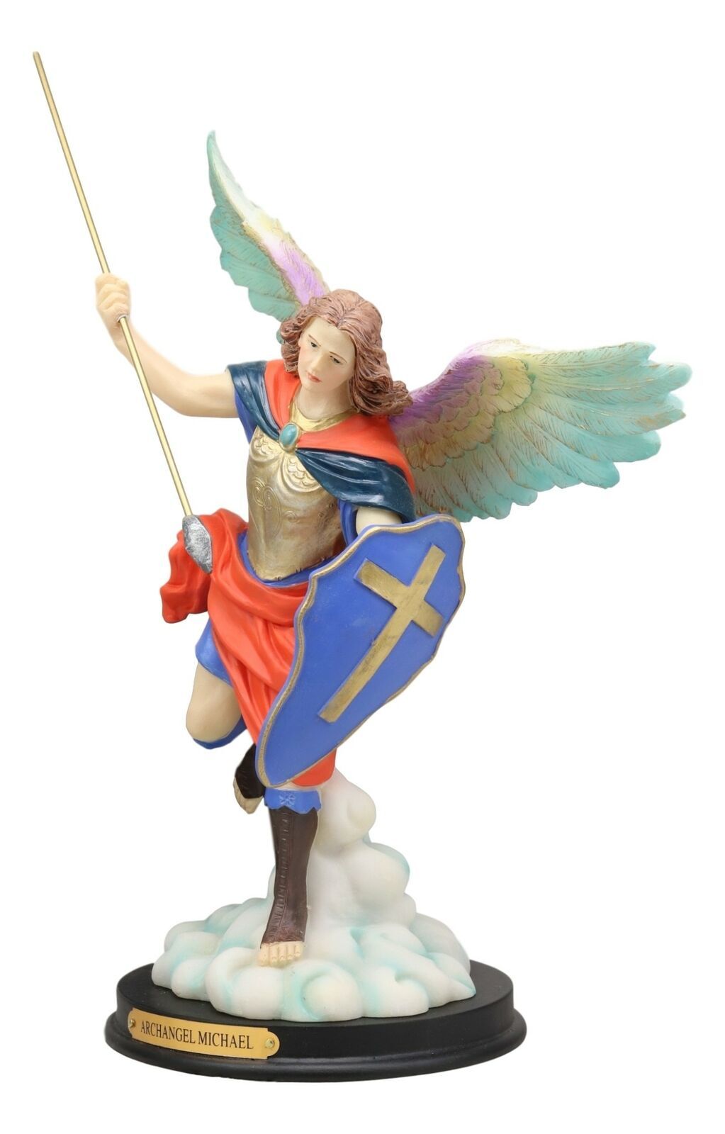 Catholic Colorful Archangel Saint Michael With Javelin Spear Shield Statue 10"H
