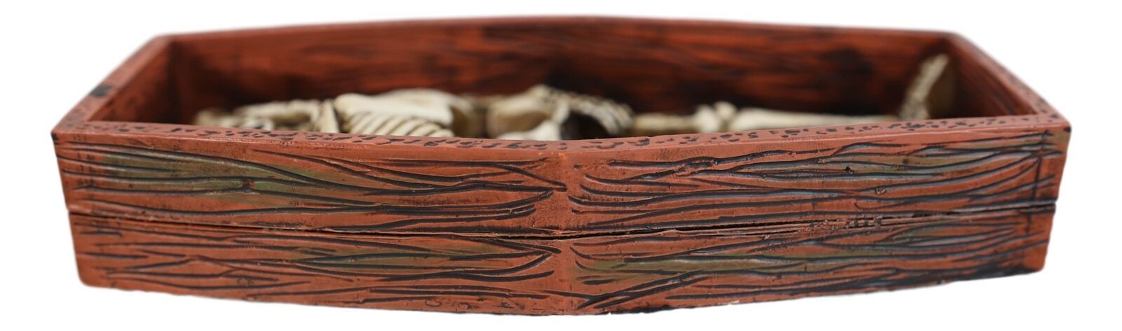 • This Love Never Dies Kissing Skeleton Couple Inside Coffin Statue is made of composite resin hand painted and polished individually.