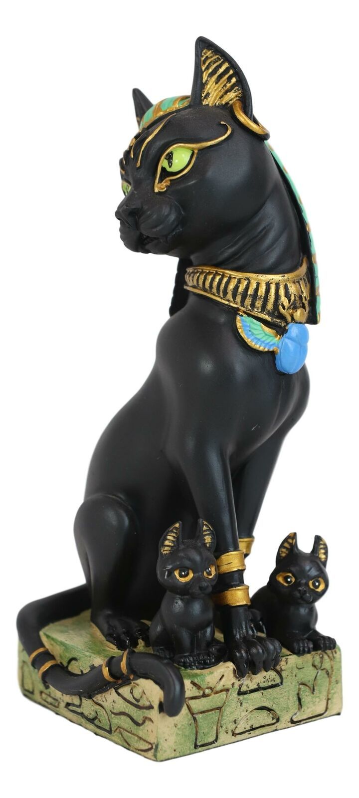 Egyptian Goddess Sitting Cat Bastet Mother With Kittens Statue in Vivid Colors