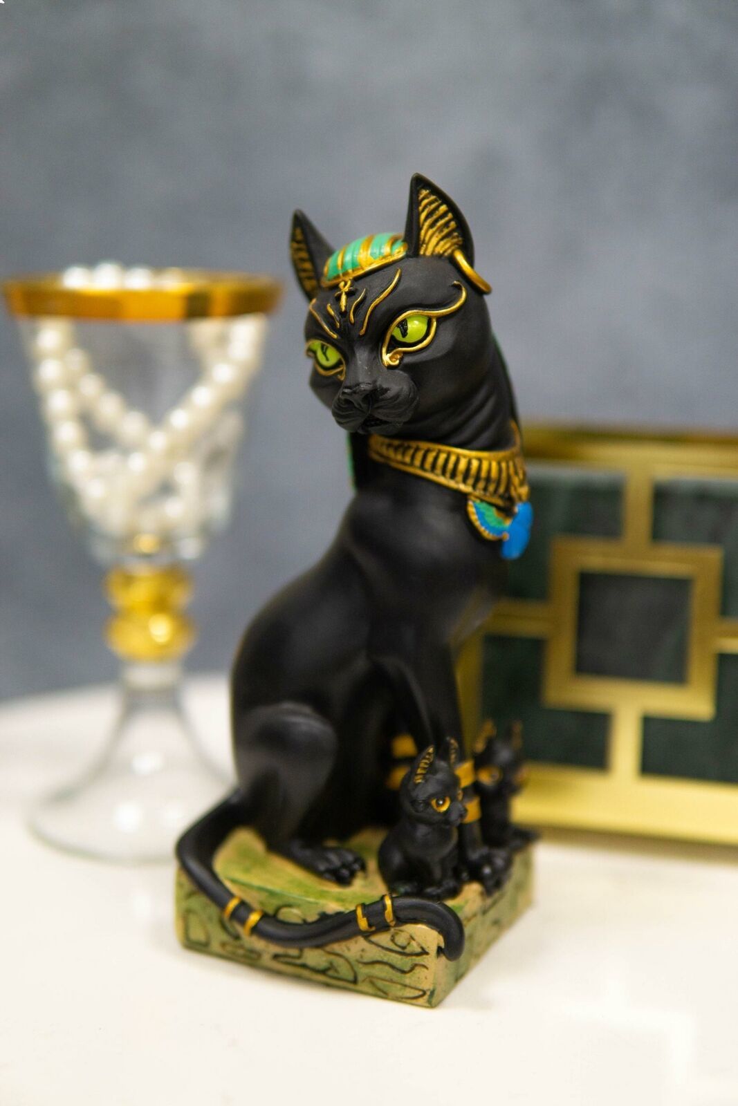 • This Beautiful Bastet Cat Sculpture is made of designer composite resin, hand painted and polished individually. Color tone may vary slightly from pictures.