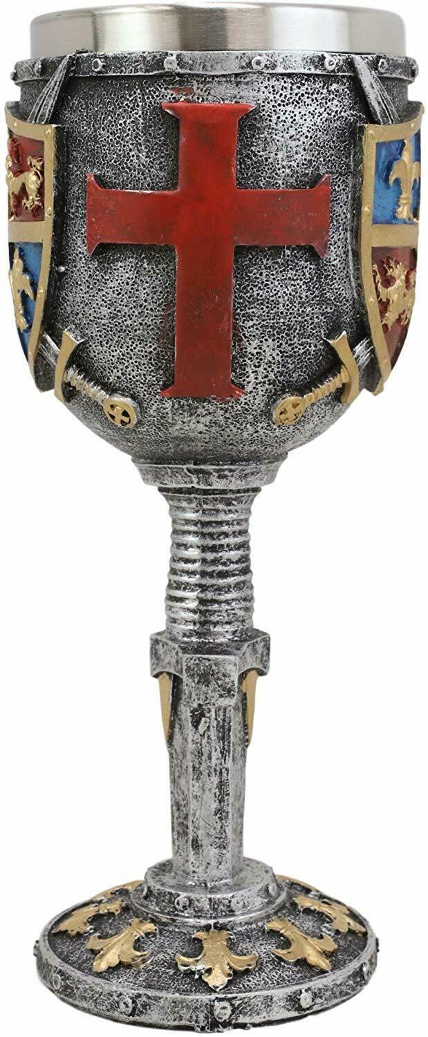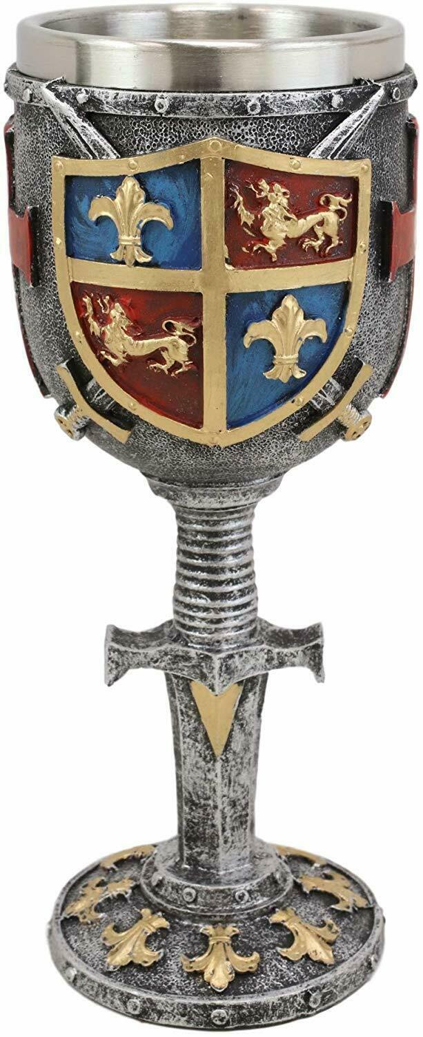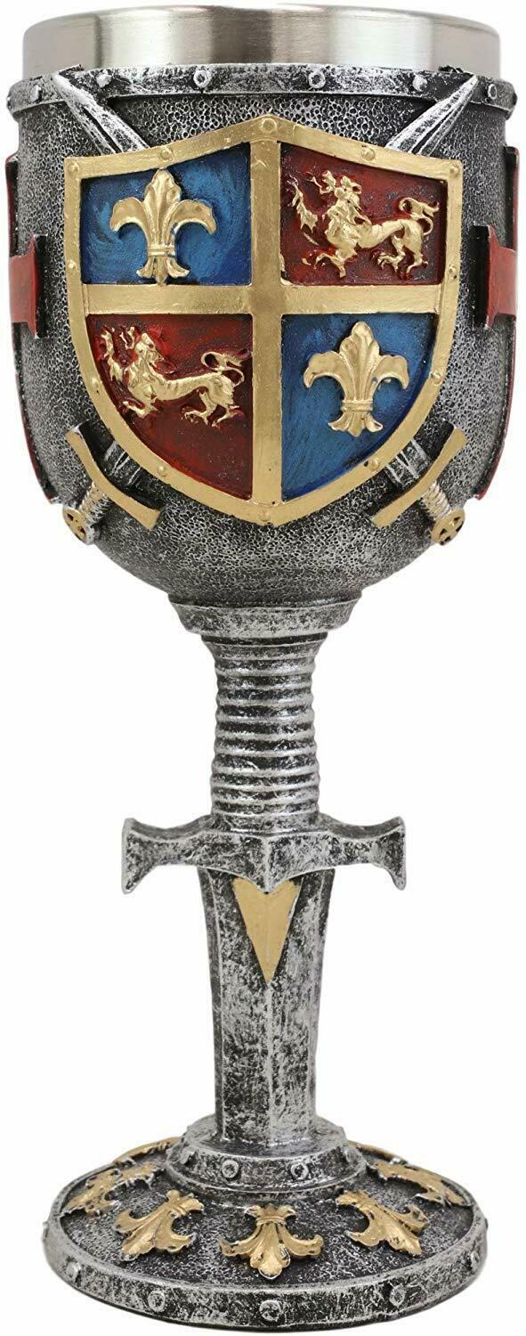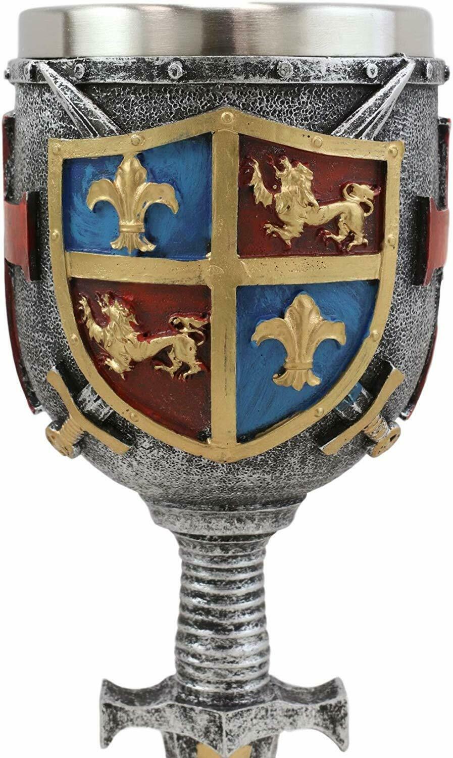 Ebros Lion And Fleur De Lis Crusader Knight Wine Goblet Chalice Drinkware Decor