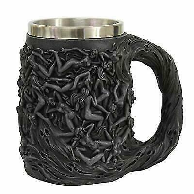 This erotica tankard mug is larger than your standard wine goblets, featuring 3d imagery resin sculpted tankard housing and a stainless steel cup liner for safe drinking. A truly erotic design artwork composed of a myriad of female nude bodies, morphed to take the shape of the mug to hold your favorite beverage. Each female body holds different postures, painted in grey abstract giving the tankard a gothic outlook.