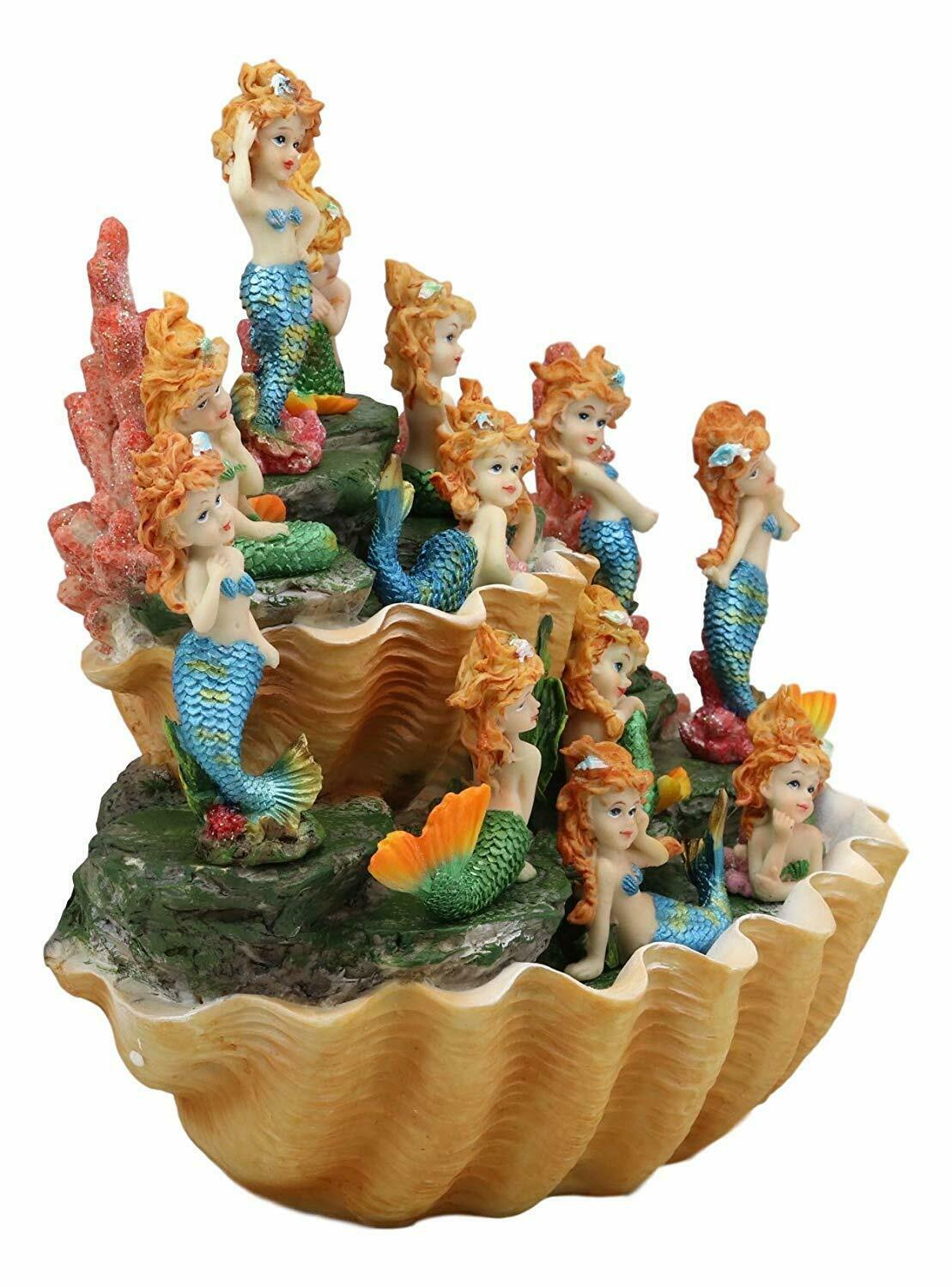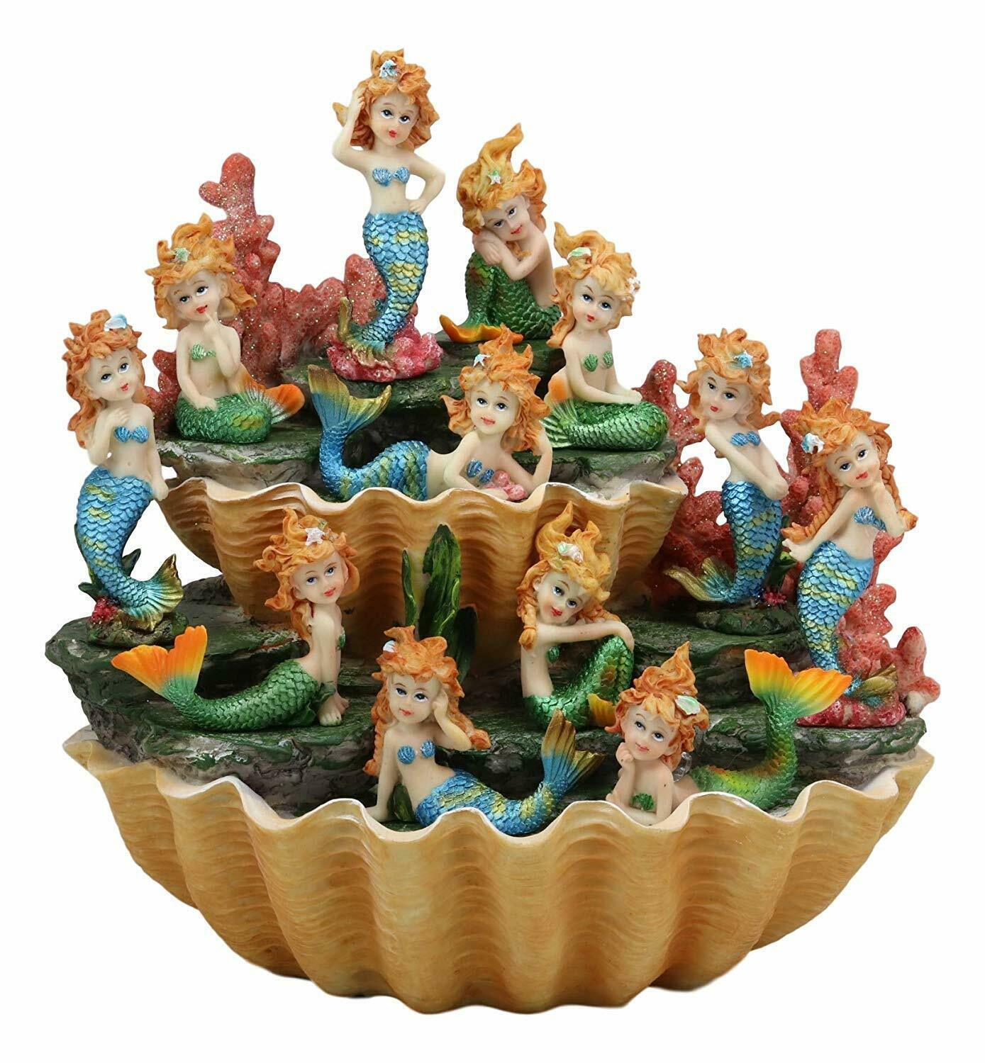 Ebros Colorful 2 Tier Golden Giant Clam Shells LED Display Stand With 12 Mini Mergirls