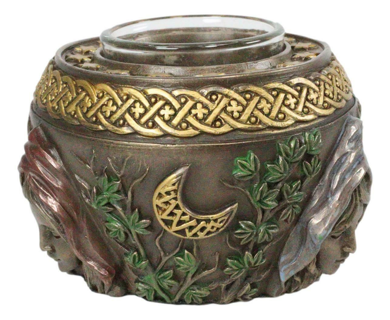 Ebros Sacred Moon Triple Goddess Maiden Mother Crone Wicca Votive Candle Holder
