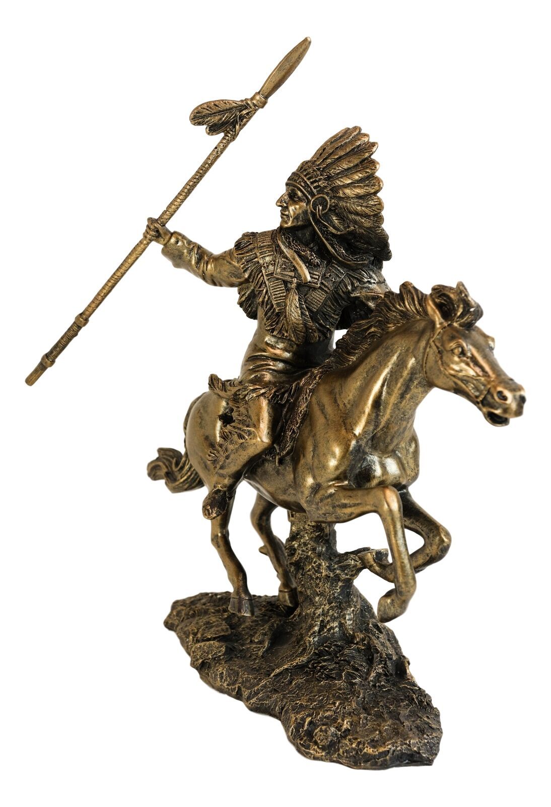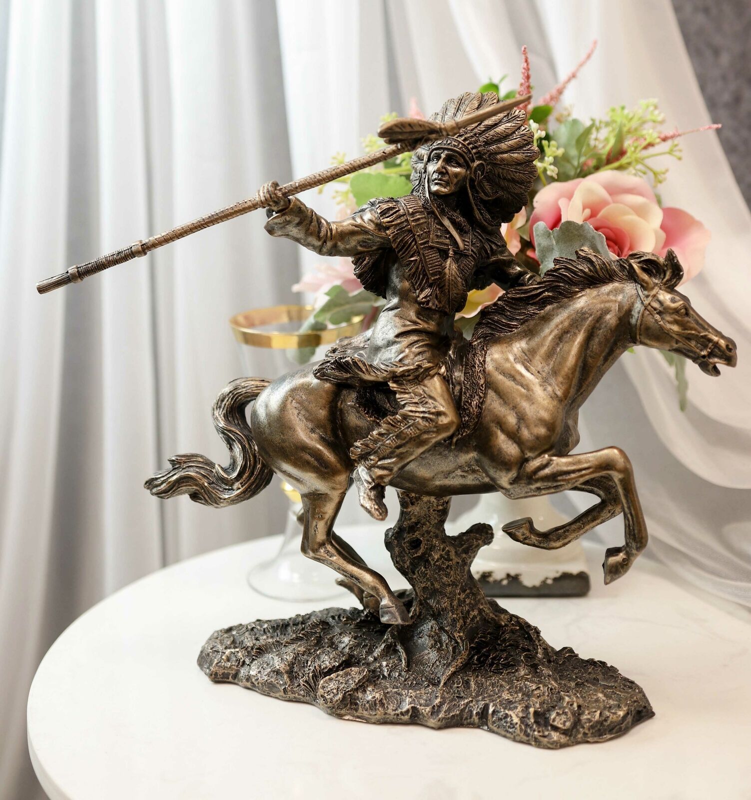 Ebros Western American Indian Warrior Riding Horse with Spear 13 " Tall