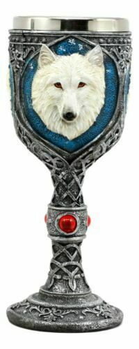 Ghost White Albino Snow Wolf Wine Goblet 7oz Direwolf Spirit Celtic Wine Chalice