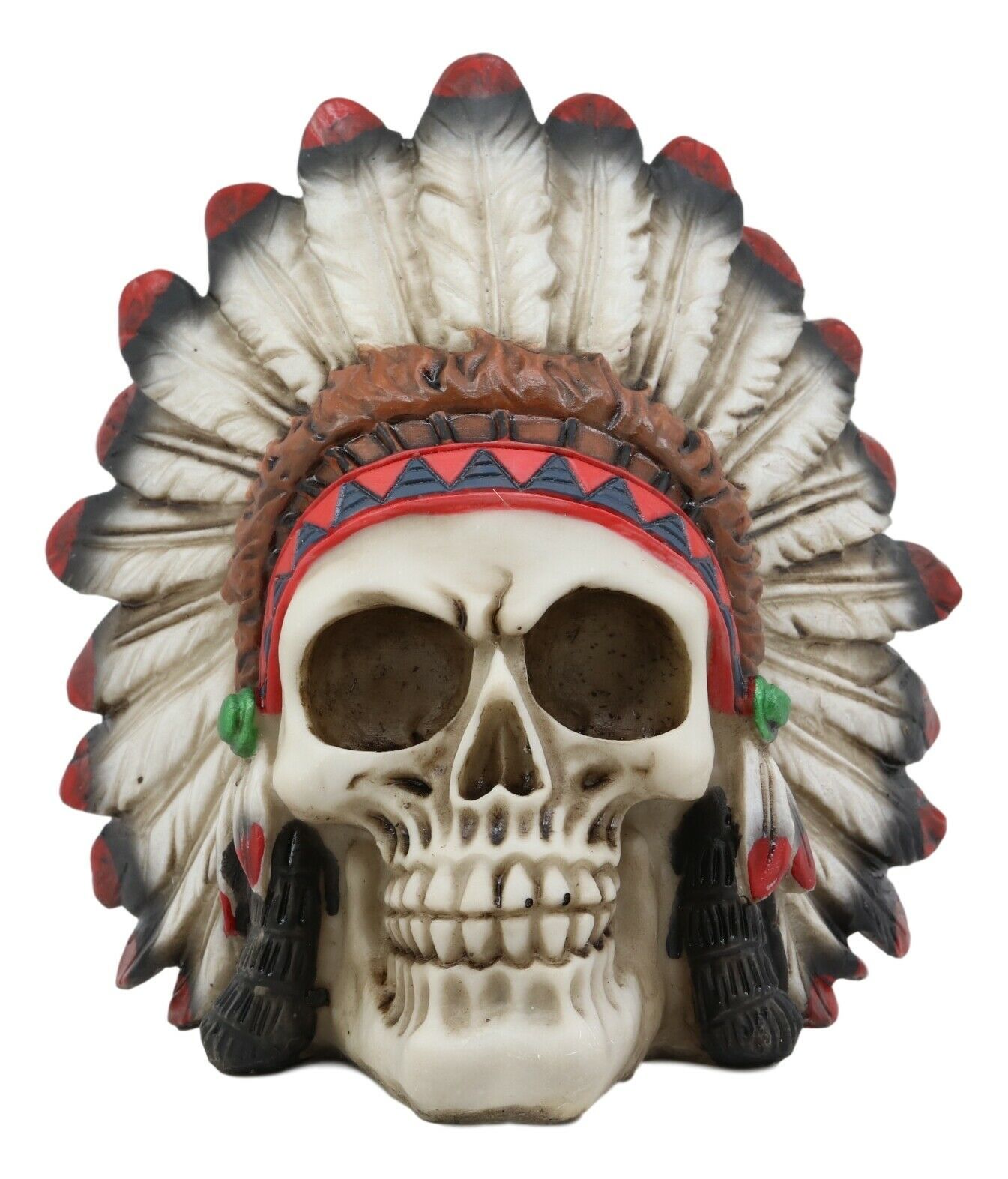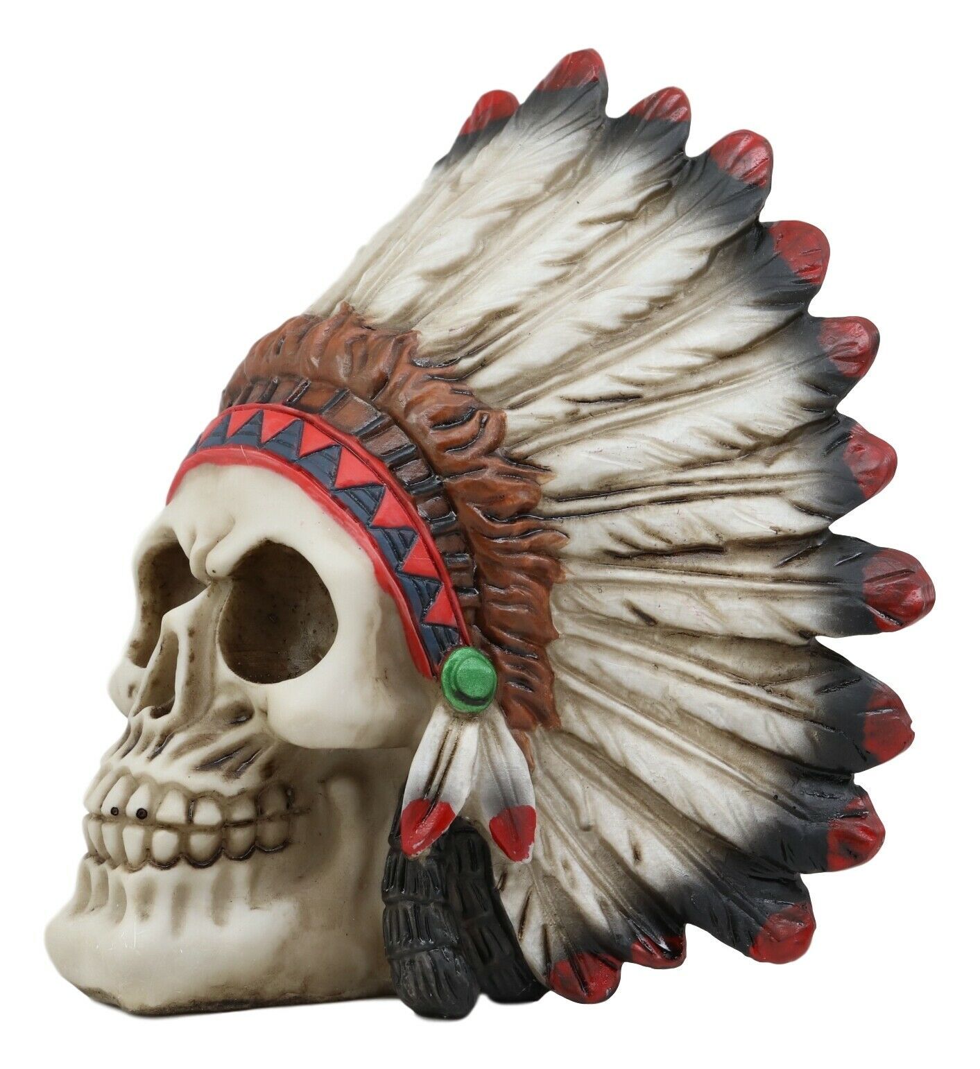 Ebros Native American Indian Eagle Chief Skull Statue 5.75"Long Tribal Mohawk Warrior