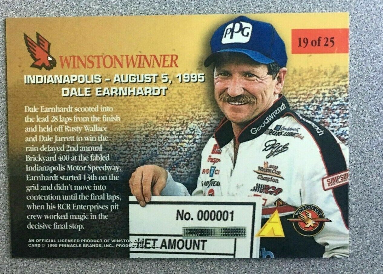 1995 NASCAR Pinnacle Zenith Winston Winners Dale Earnhardt #19 Insert Card