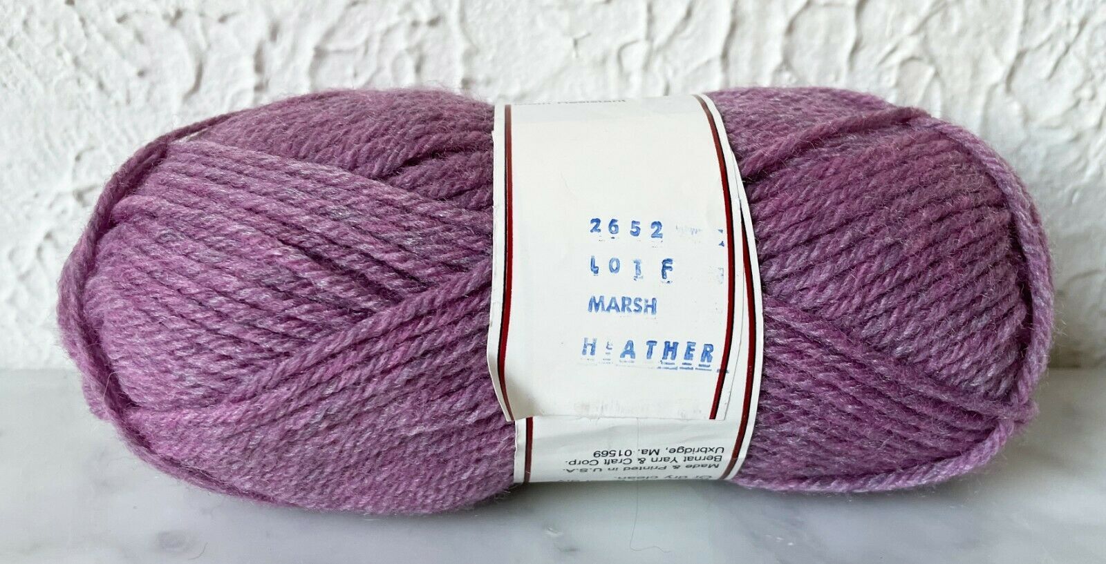 One skein of Bernat Germantown 50/50 worsted weight yarn. Color Marsh Heather #2653. 50% Wool, 50% Polyester. Made in USA. Please see the pictures for all the details.