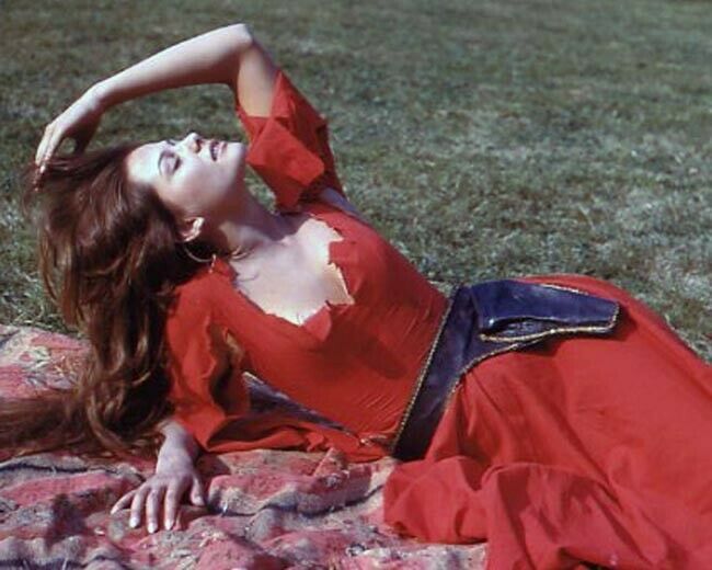 Claudia Cardinale in low cut red dress lying and 50 similar items