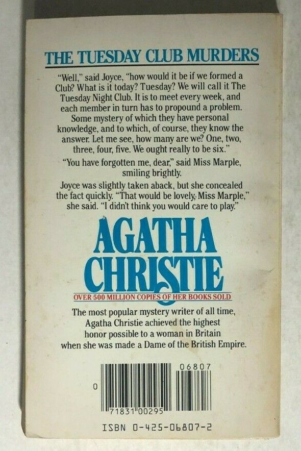 TUESDAY CLUB MURDERS Agatha Christie 1984 Berkley Miss Marple mystery paperback