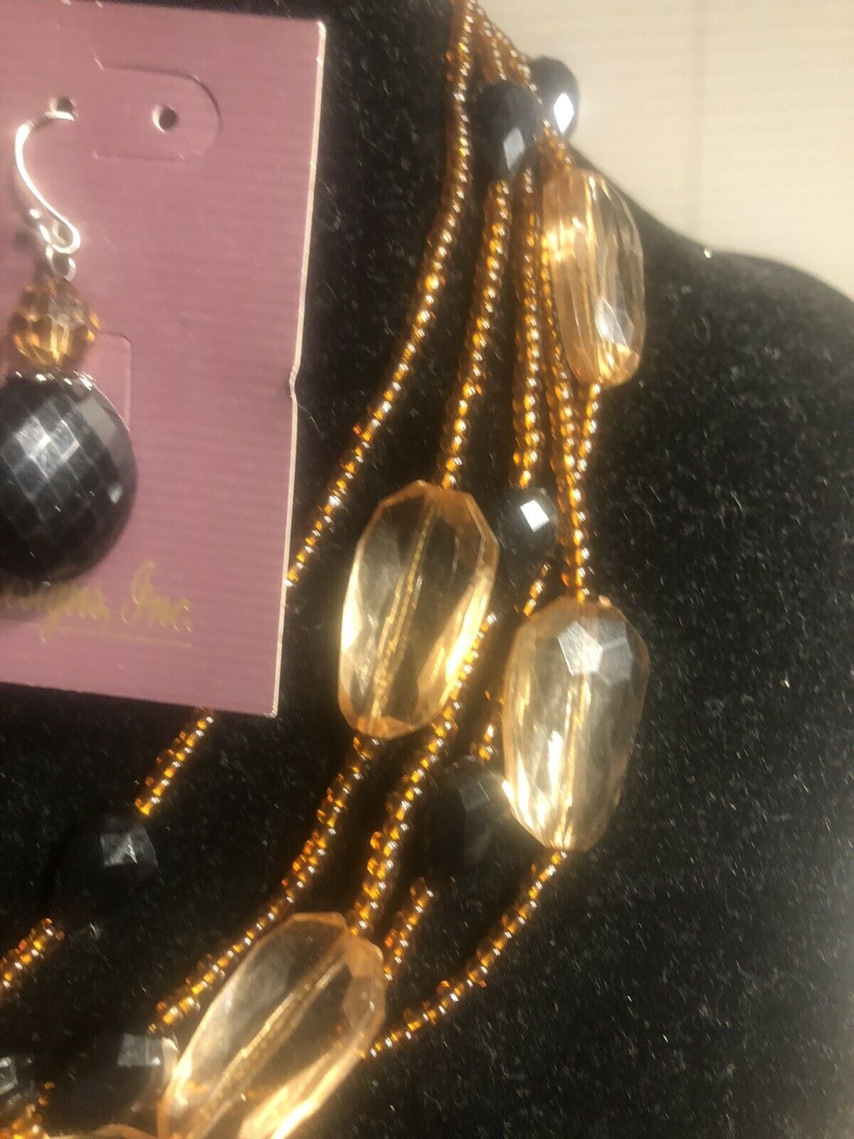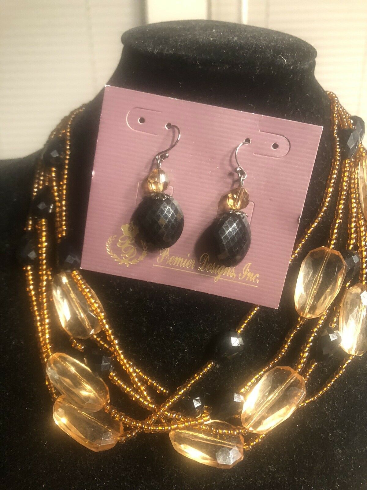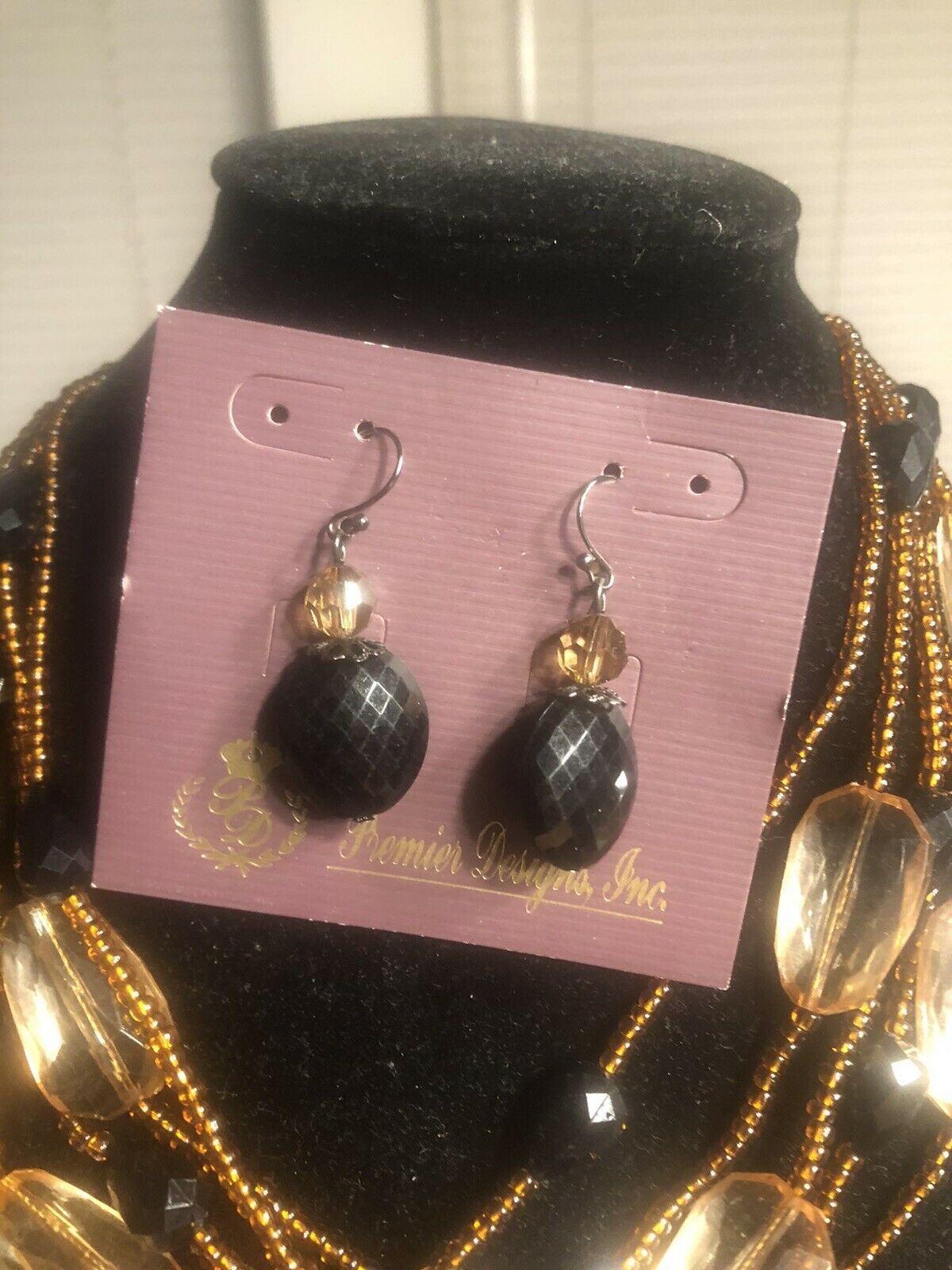Set Premier Designs Jewelry Hook Earrings Black Essence Encore W/ Necklace New. Shipped with USPS First Class.