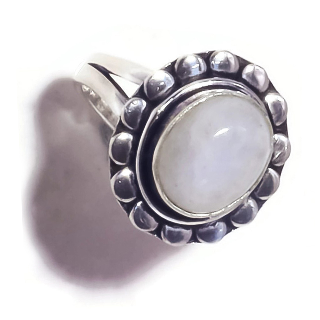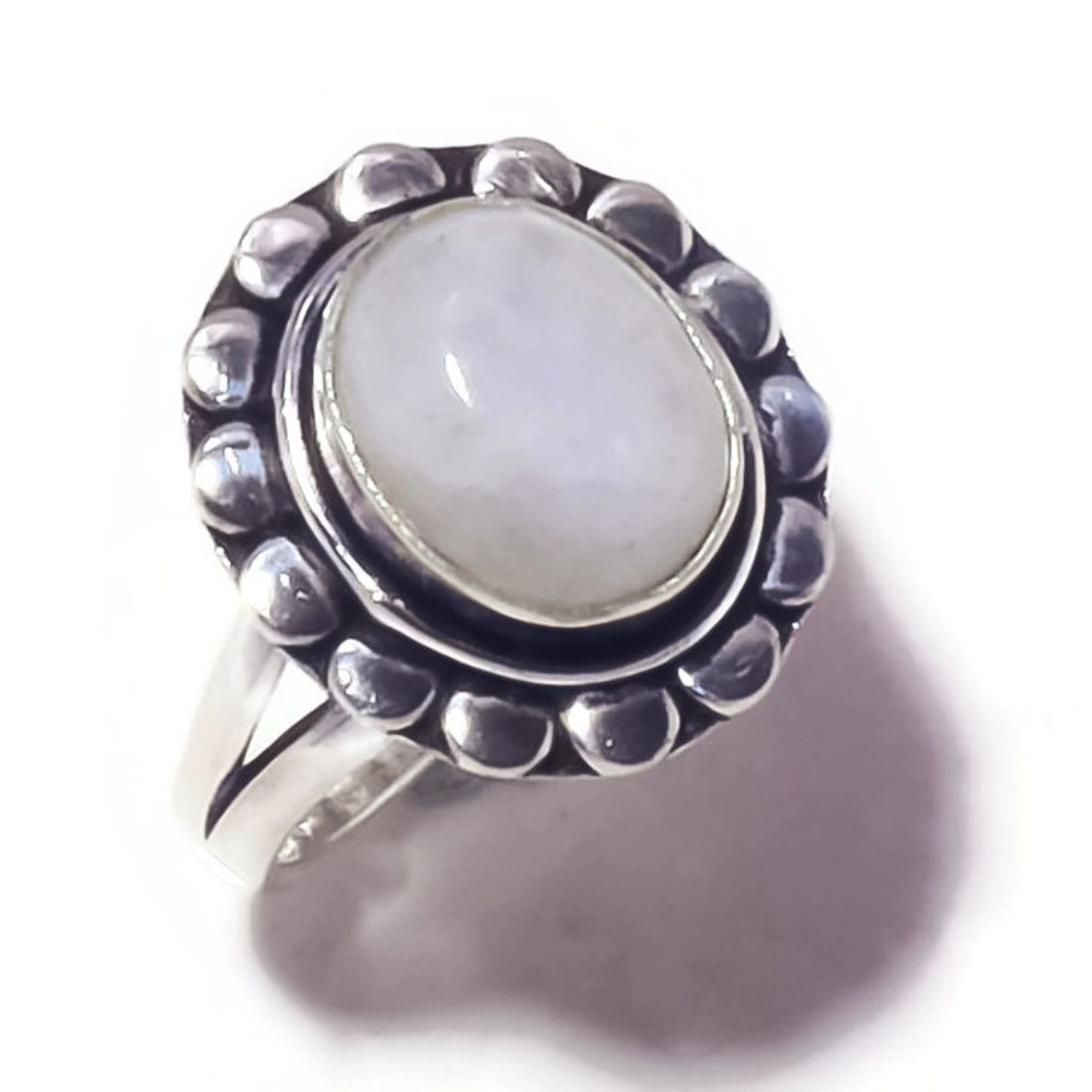 White Rainbow Moonstone Oval Gemstone 925 Silver Overlay Handmade Ring US-7.5