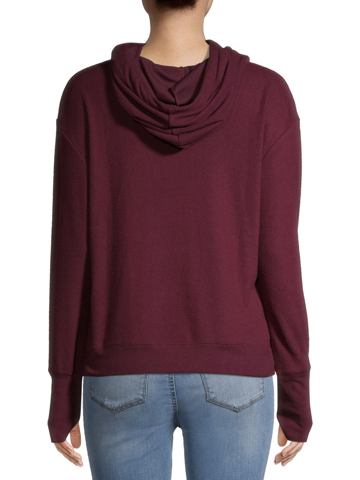 Seriously stylish for your sweater-weather collection, No Boundaries? Funnel Neck Pullover Sweater feels so good against the skin in a soft brushed rib design while keeping things sporty with an attached hood.