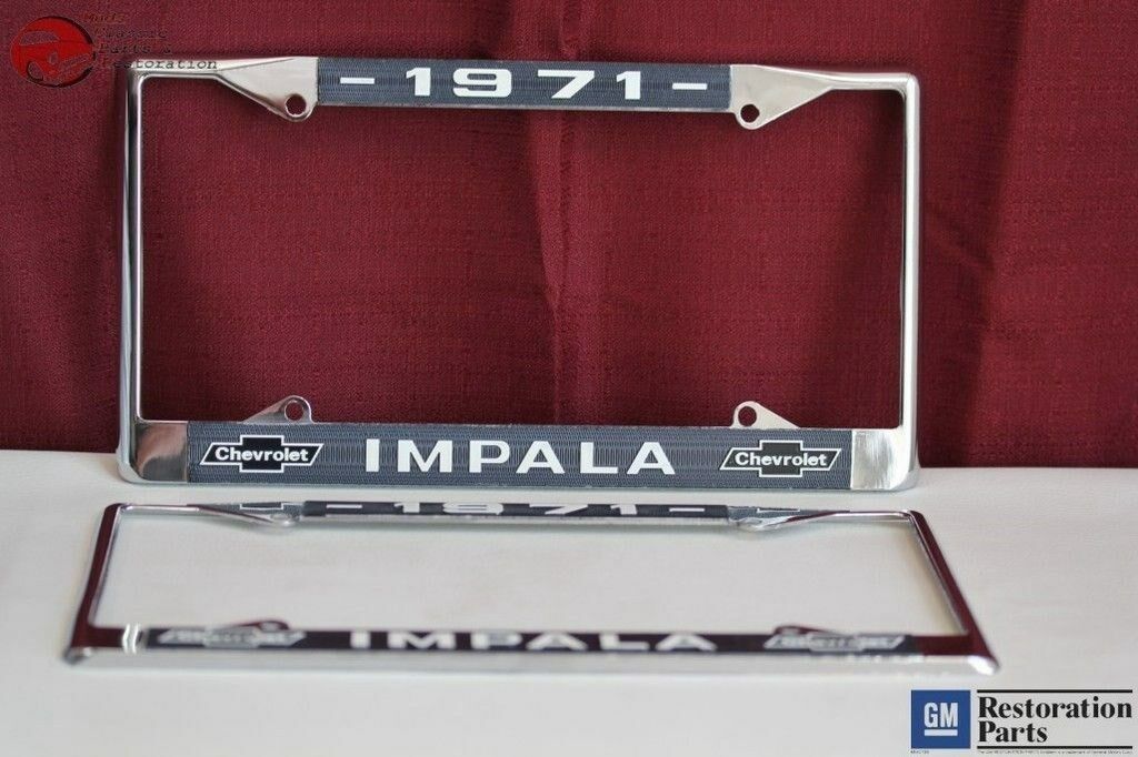 1971 Chevy Impala GM Licensed Front Rear License Plate Holder Retainer Frames