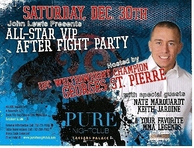 The John Lewis' All Star VIP After Fight Party Hosted by UFC Welterweight Campion Georges ST. Pierre with special guest Nate Marquardt, Keith Jardine at Pure Nightclub inside the Caesars Palace Hotel Casino in Las Vegas, Nevada.