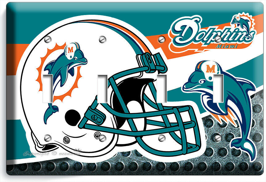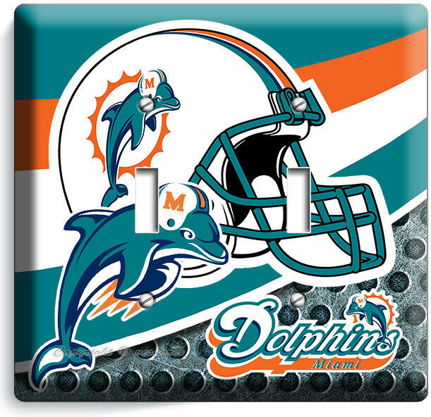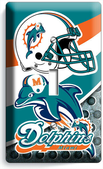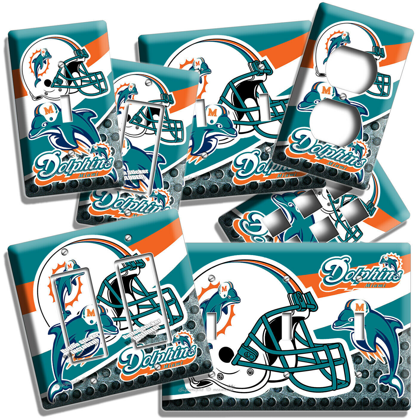 MIAMI DOLPHINS FOOTBALL TEAM LOGO LIGHT SWITCH OUTLET WALL PLATES MAN CAVE DECOR