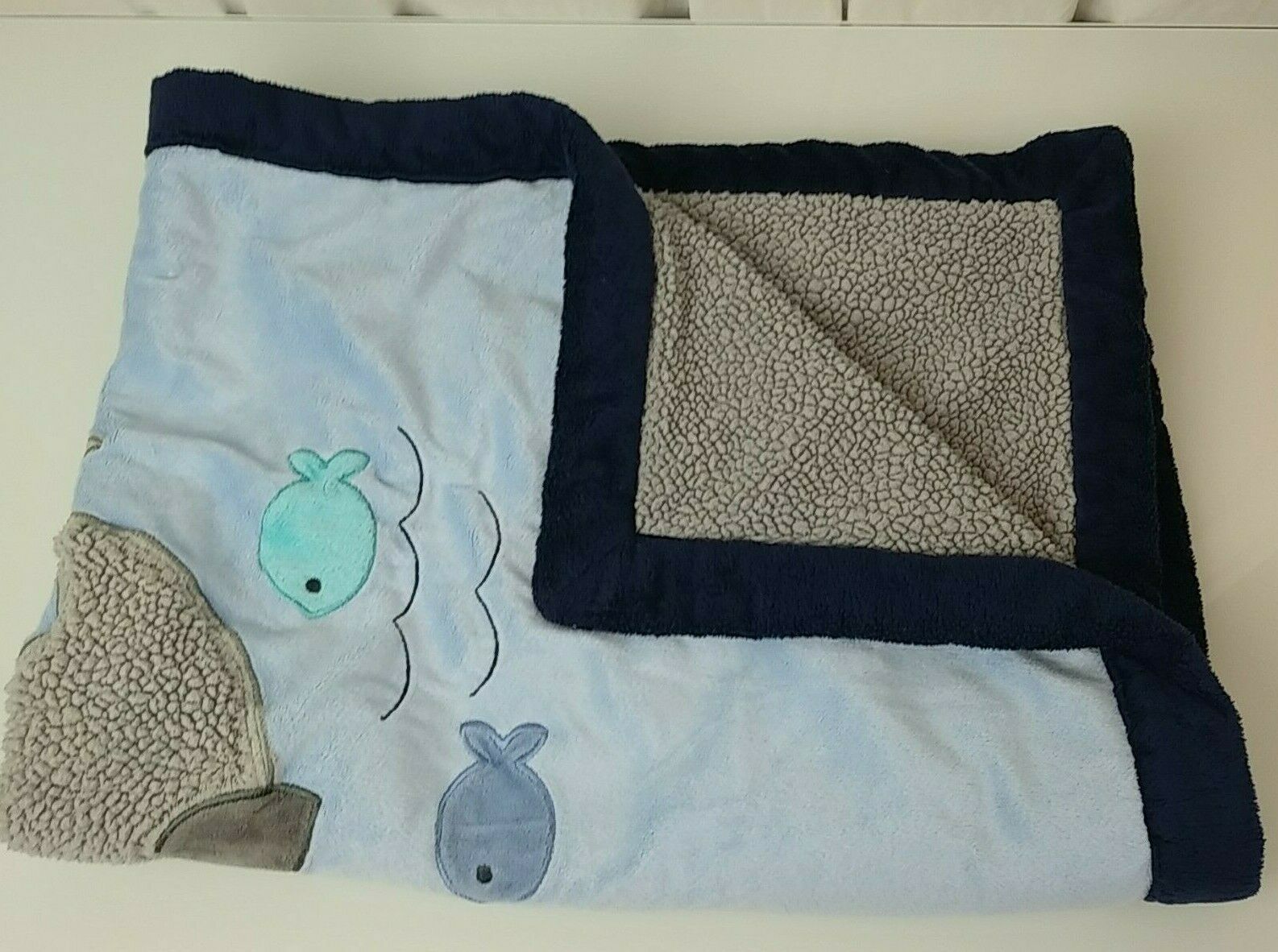 Koala Baby Blue Water Fish Spouting Whale Blanket Gray Sherpa Navy Trim