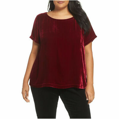 EILEEN FISHER Hibiscus Red Washable Velvet Boat Neck Top 1X