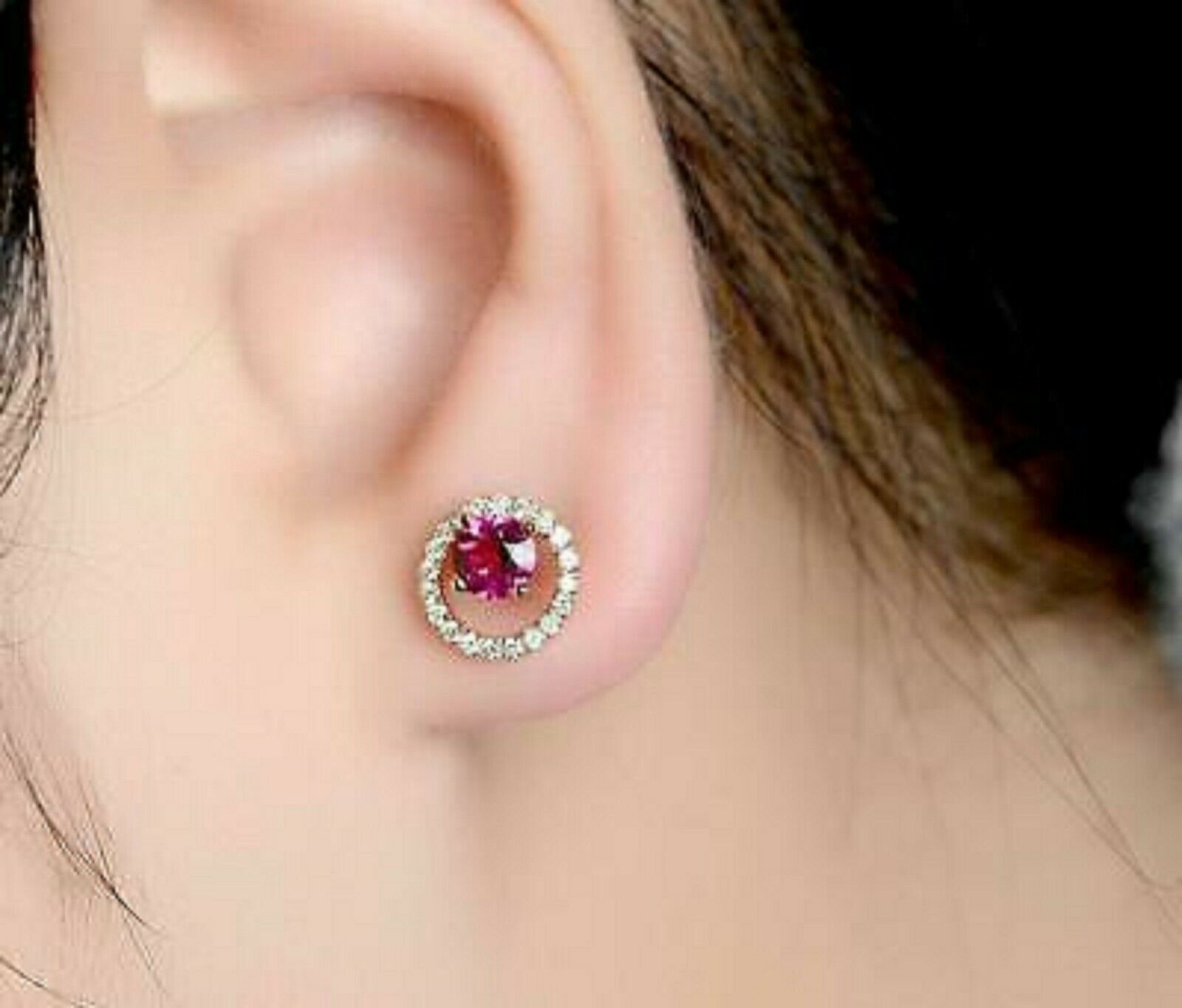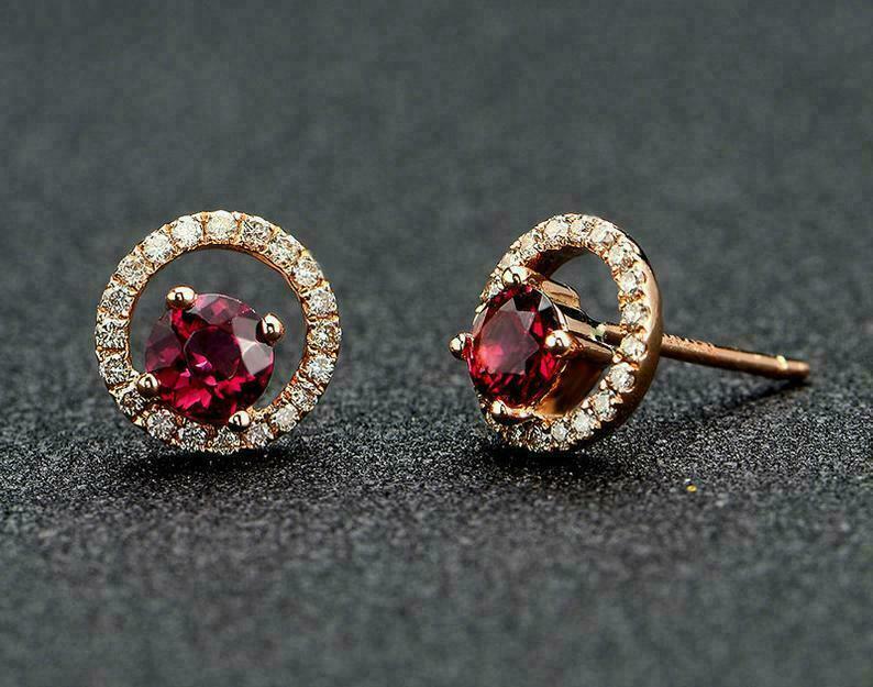 2Ct Round Cut Red Garnet Halo Stud Earring's and 15 similar items