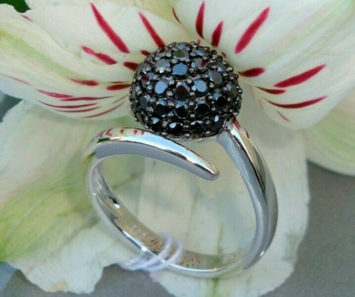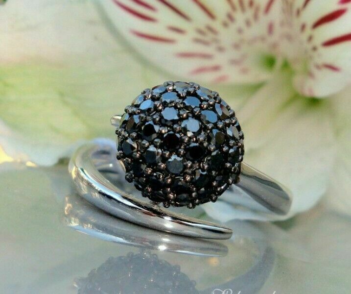 2Ct Round Cut Black Diamond Cluster Engagement Wedding Ring 14k White Gold Over