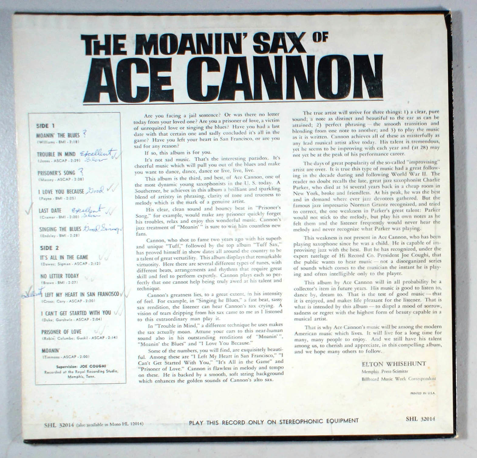 Ace Cannon - The Moanin' Sax of (1964) Vinyl LP •PLAY-GRADED•