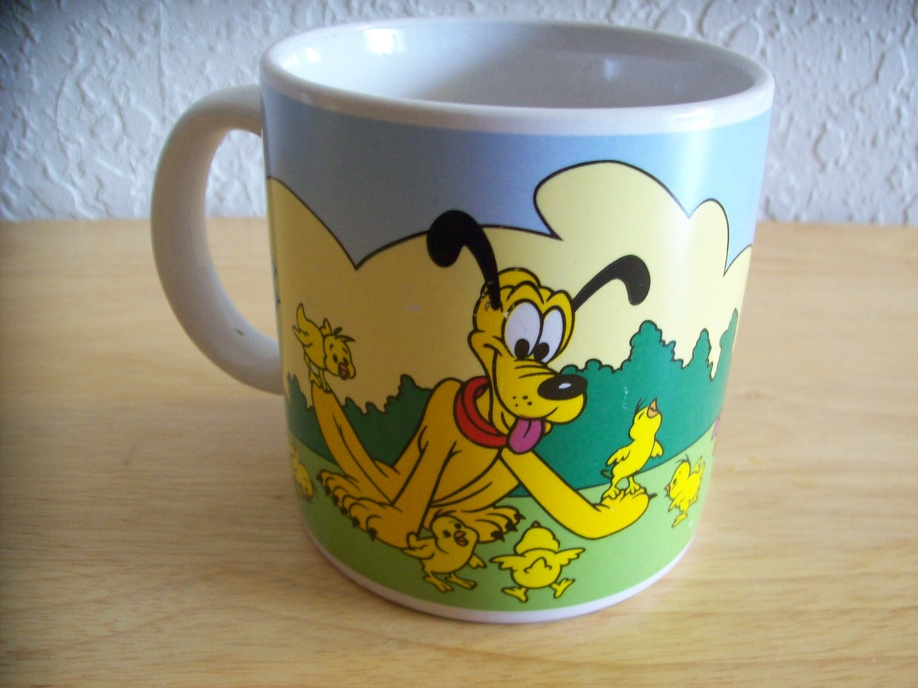 Disney Mickey Minnie Easter Coffee Mug by Applause. New, in good condition. Has a few light scratches (see photo). Has Mickey, Minnie and Pluto. Inside reads “Easter’s Poppin’ Out All Over!”