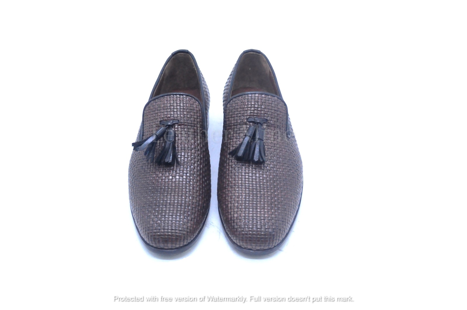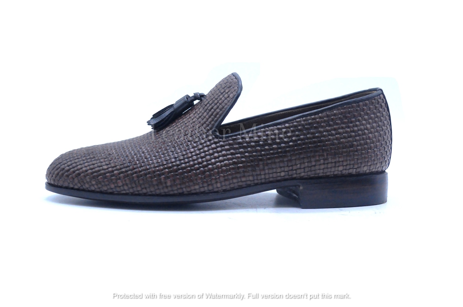 Leather Brown Woven Loafers shoes Men's, Handmade Formal Custom Made Shoes