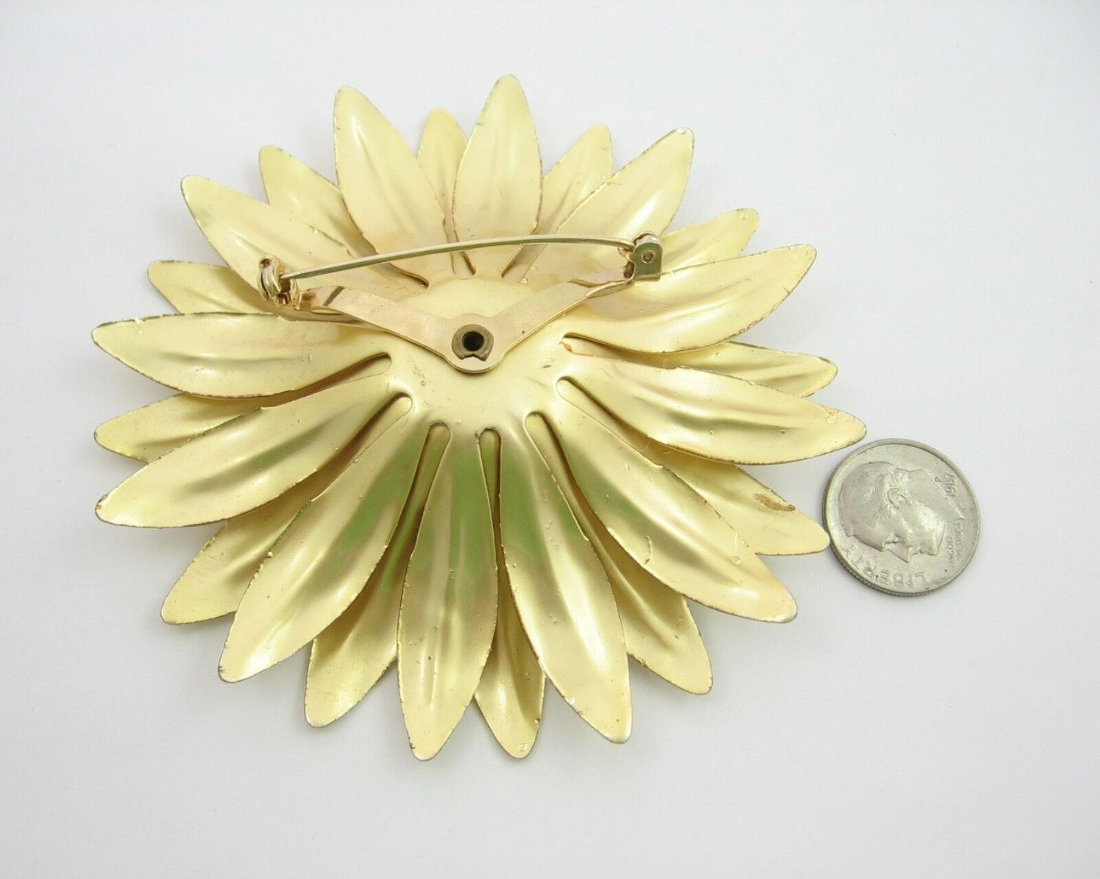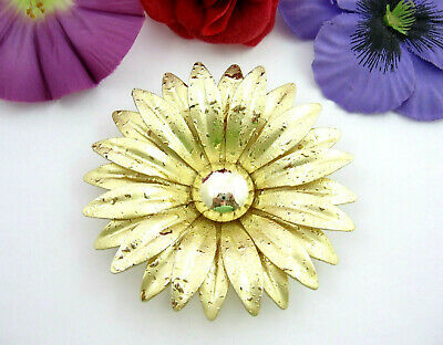 BIG BOLD BRIGHT BROOCH Shiny Speckled Goldtone FLOWER Daisy Floral Vintage Pin 3
